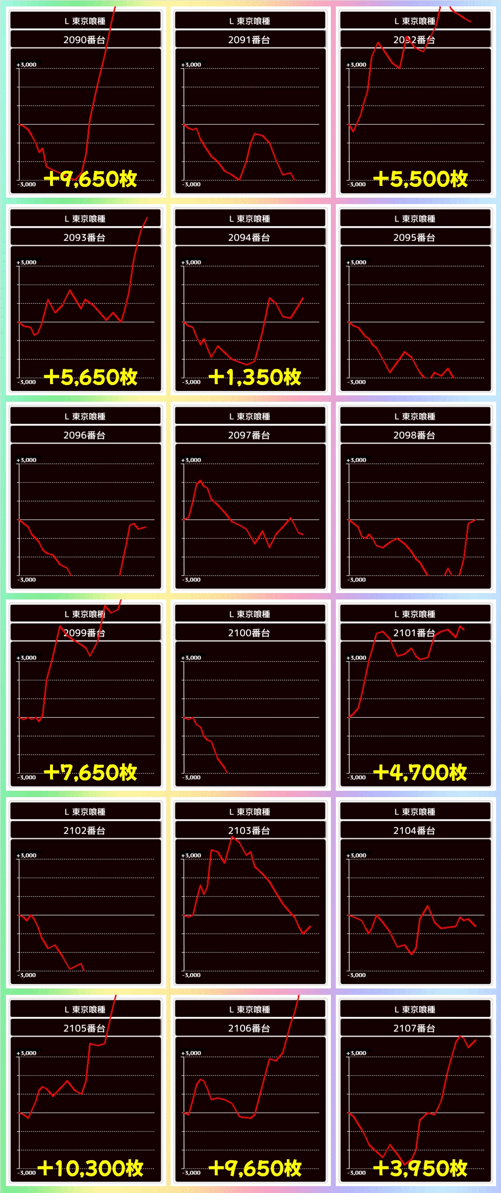 【2台並び】L東京喰種(2105台番〜2106台番)→平均+9,975枚(2/2台+)