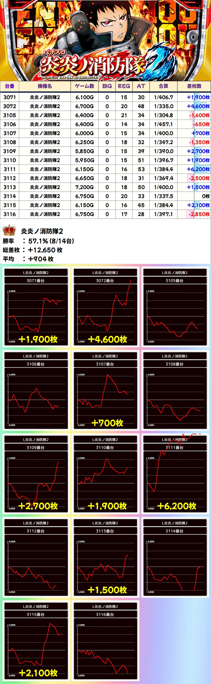 【高配分】炎炎ノ消防隊2(8/14台+)→平均+904枚