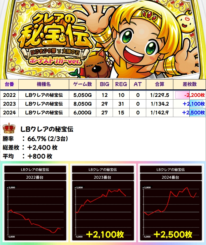 【高配分】LBクレアの秘宝伝(2/3台+)→平均+800枚