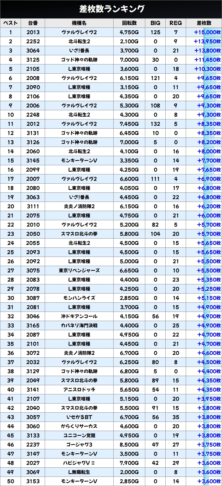 そんな超ド級周年日でしたが、今回も平均+200枚とホール全体が高配分に!