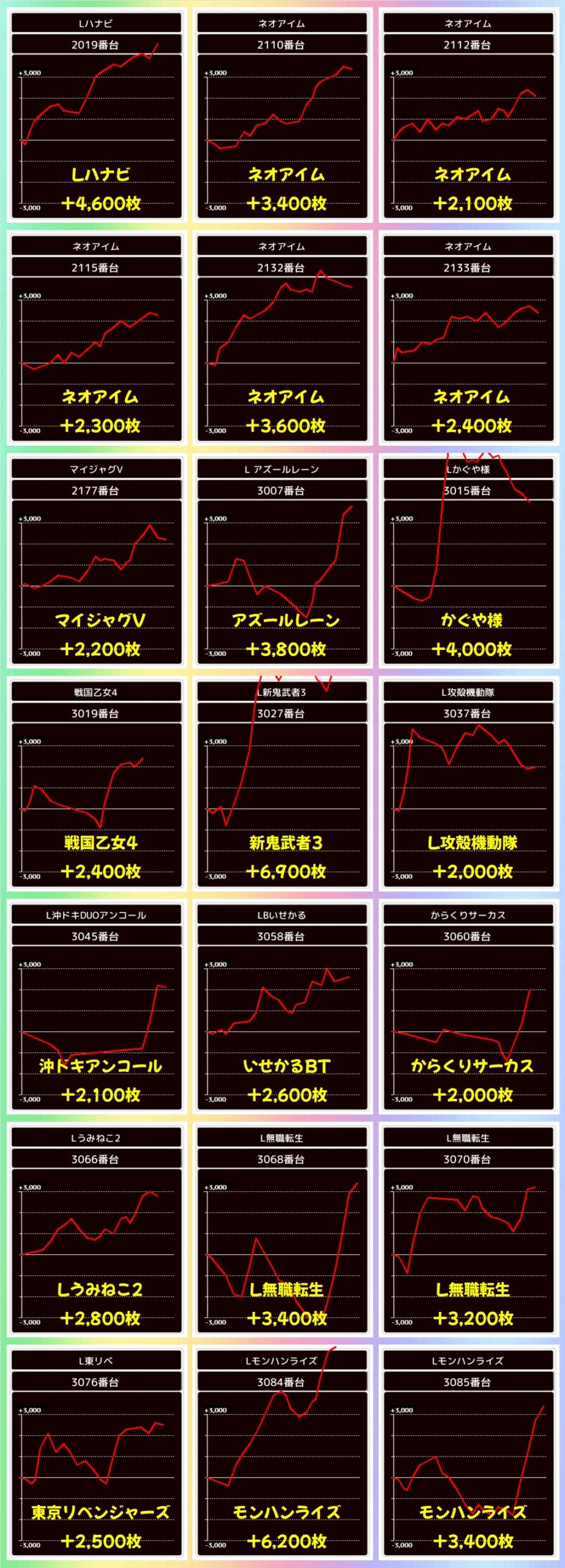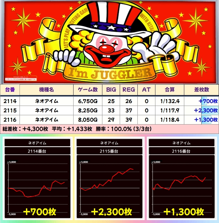 【3台並び】ネオアイム(2114台番〜2116台番)→平均+1,433枚(3/3台+)