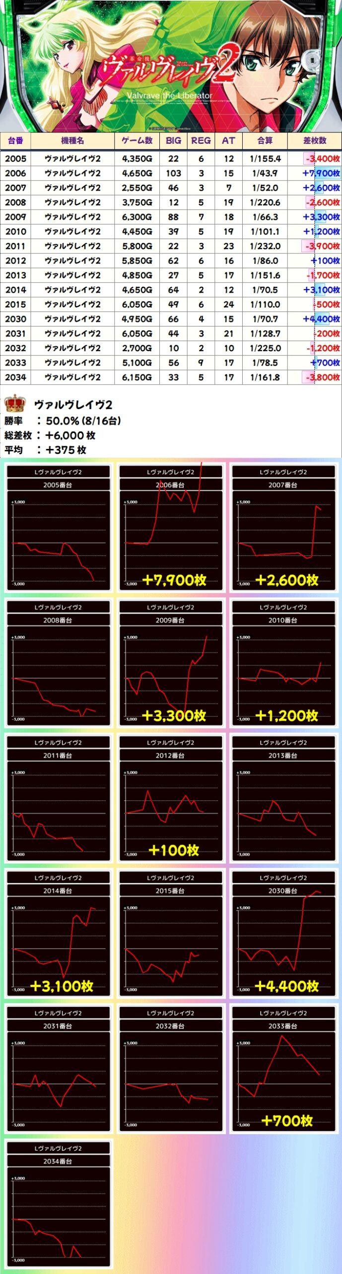 【2台並び】ヴァルヴレイヴ2(2009台番〜2010台番)→平均+2,250枚(2/2台+)