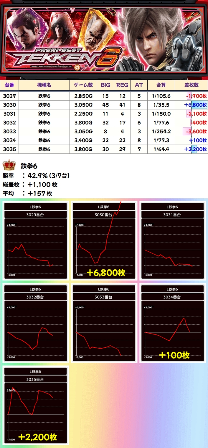【1/2系濃厚】鉄拳6(3/7台+)→平均+157枚