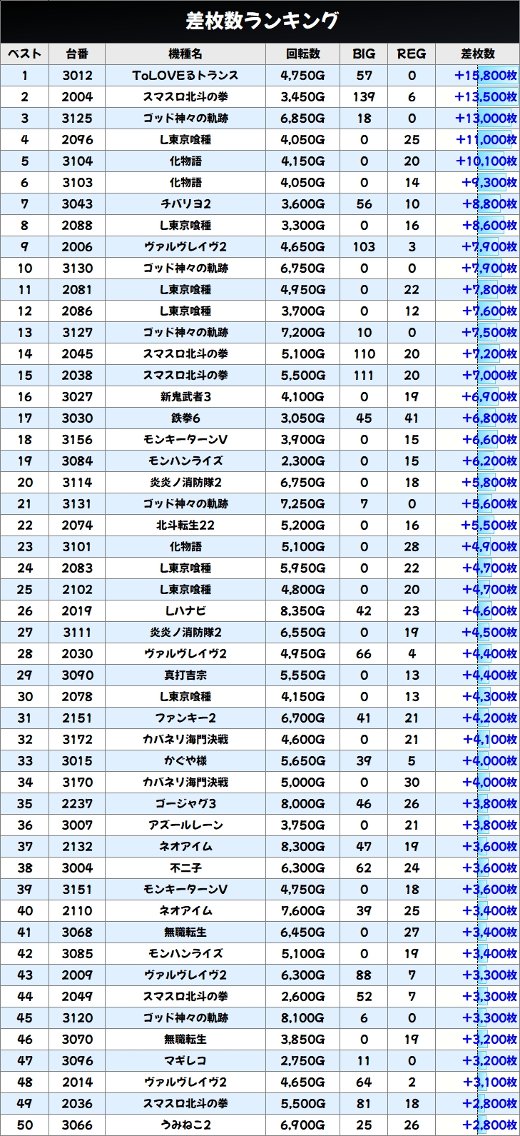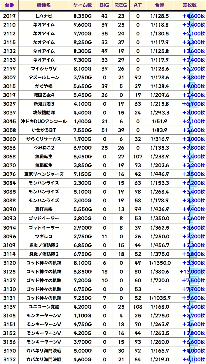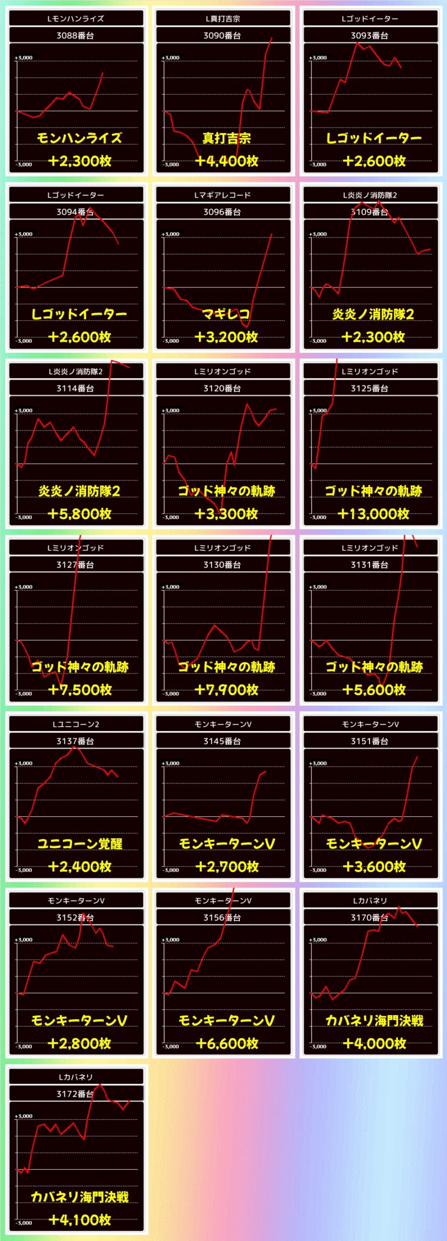 この日は仕掛け以外にも単品でお宝台だ多数投入されていたようで、2F・3Fとフロアを問わず優秀台を確認!