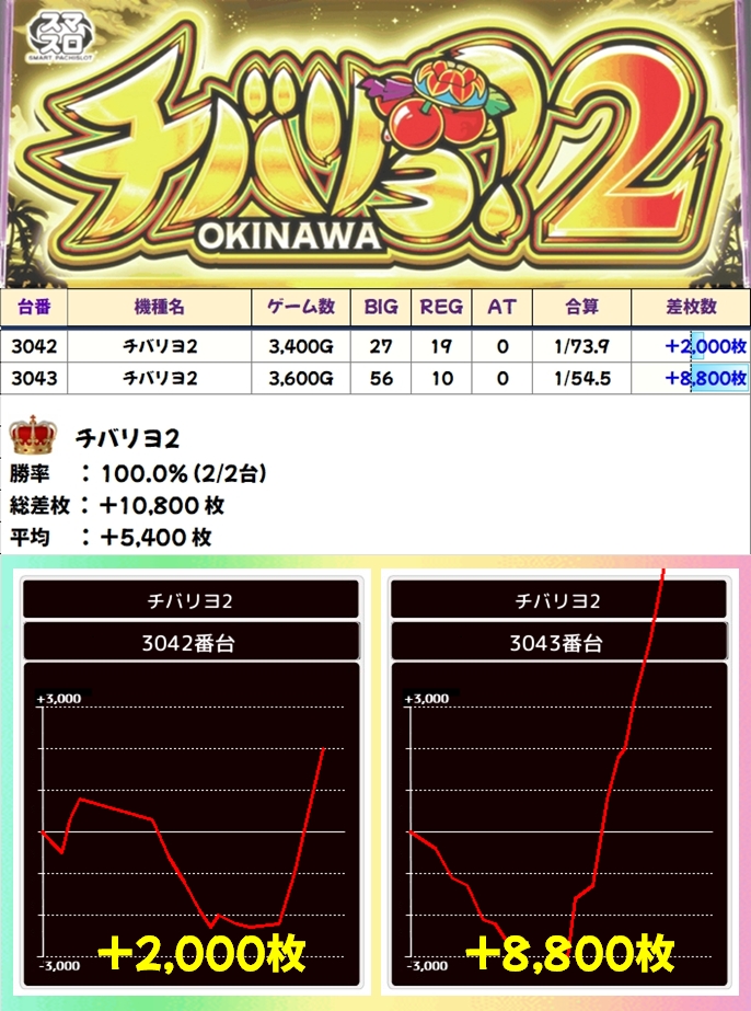 また、今回は悪番対策で少台数かつ沖スロのチバリヨ2も全台系となっていたようです。