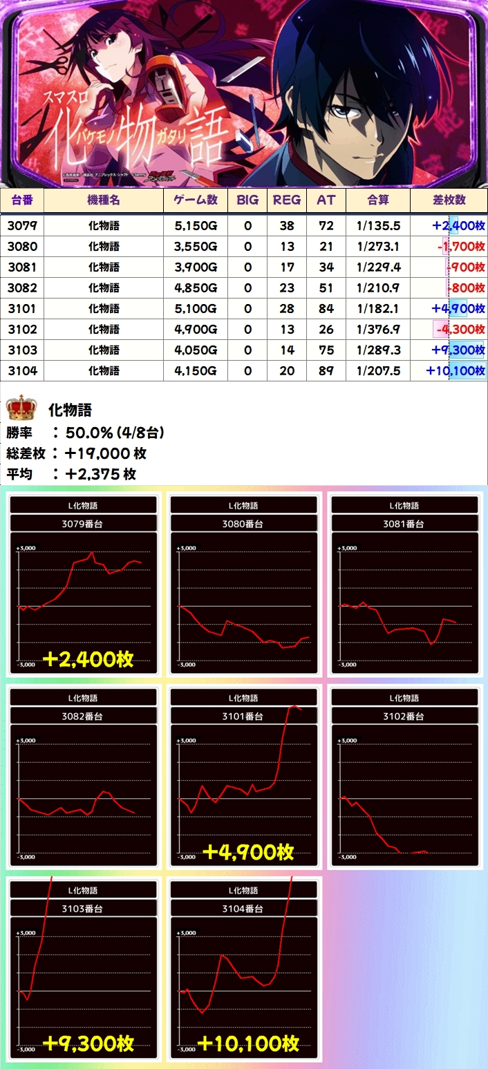 【全台系濃厚】化物語(4/8台+)→平均+2,375枚