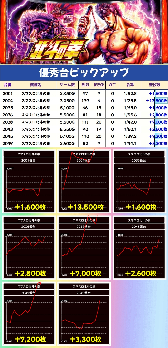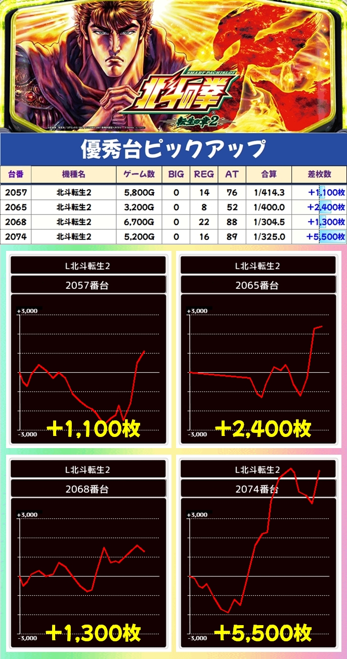 週間オススメのスマスロ北斗と北斗転生2には連日優秀台を確認でき、この日はスマスロ北斗が1/3系濃厚に!