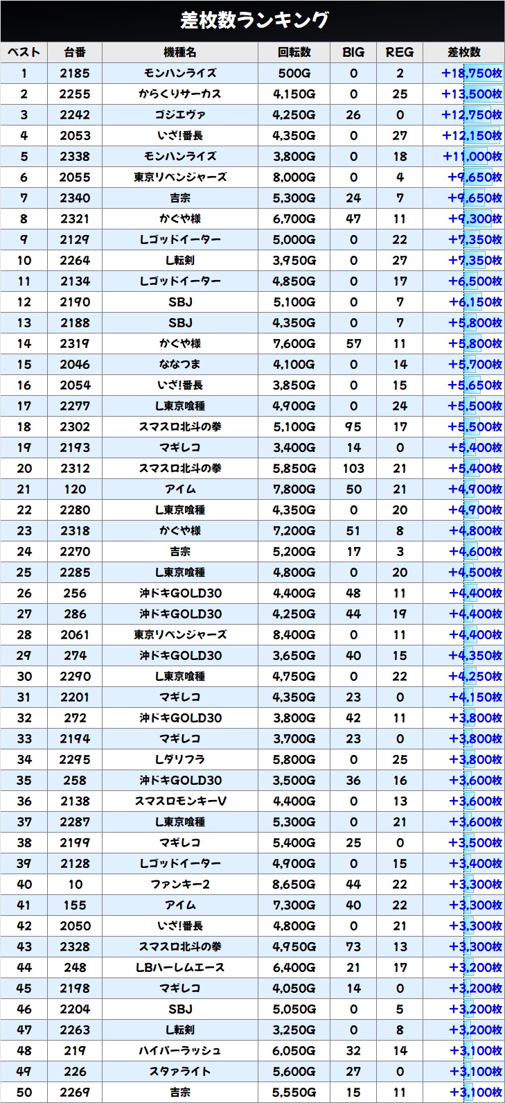 差枚数ランキング&島図をチェック