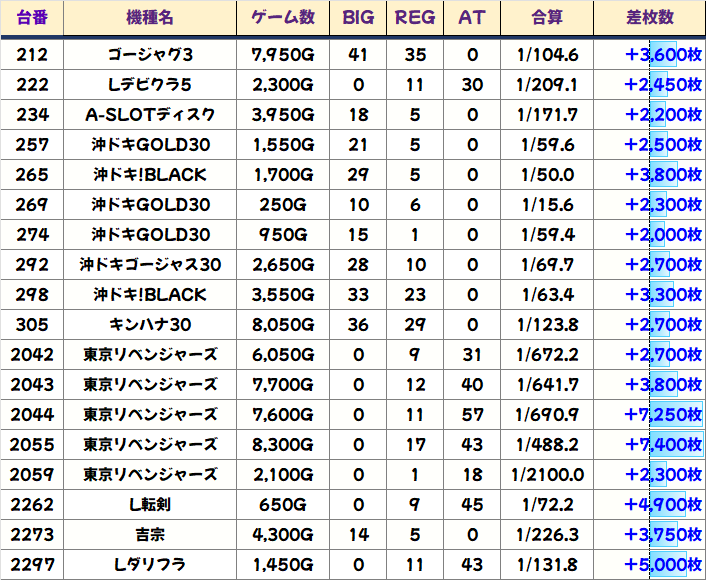 単品優秀台も数多くあり新台の東リべや沖スロ系が目立っていました。18日はスマスロに力が入っているので、迷ったらまずスマスロにいくべきですよ。