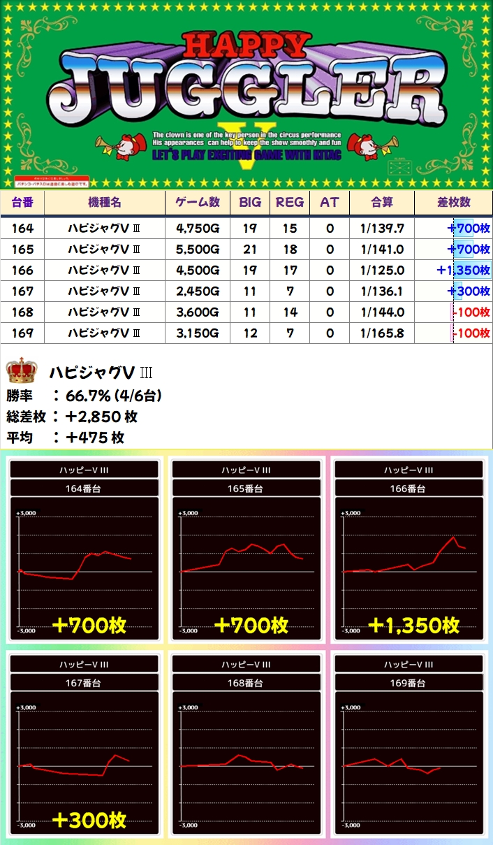 機種単位の仕掛けはジャグ3シリーズにあり、全系のアイムは全台高稼働で結果を残した台も多いです。ハピジャグやマイジャグは全系とまではいかないものの半数は優秀で、稼働にも差があるので打ち手も判別できていたのでしょう。