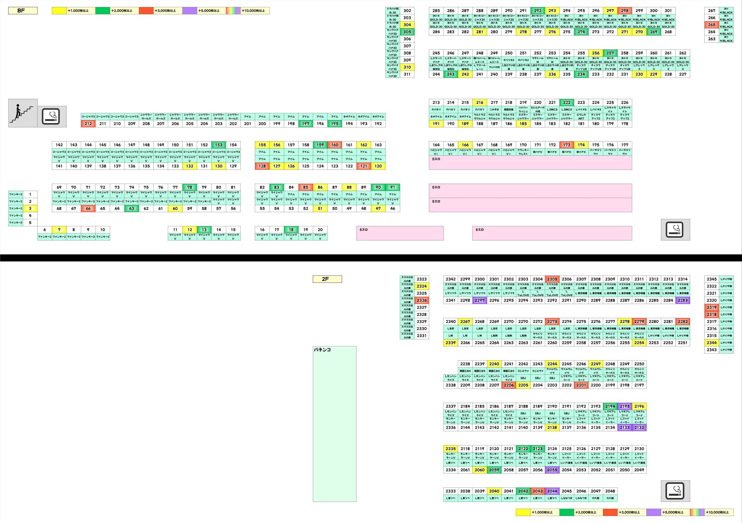 新台や多台数機種、17日の仕掛けがあった機種や不発台の上げ、
