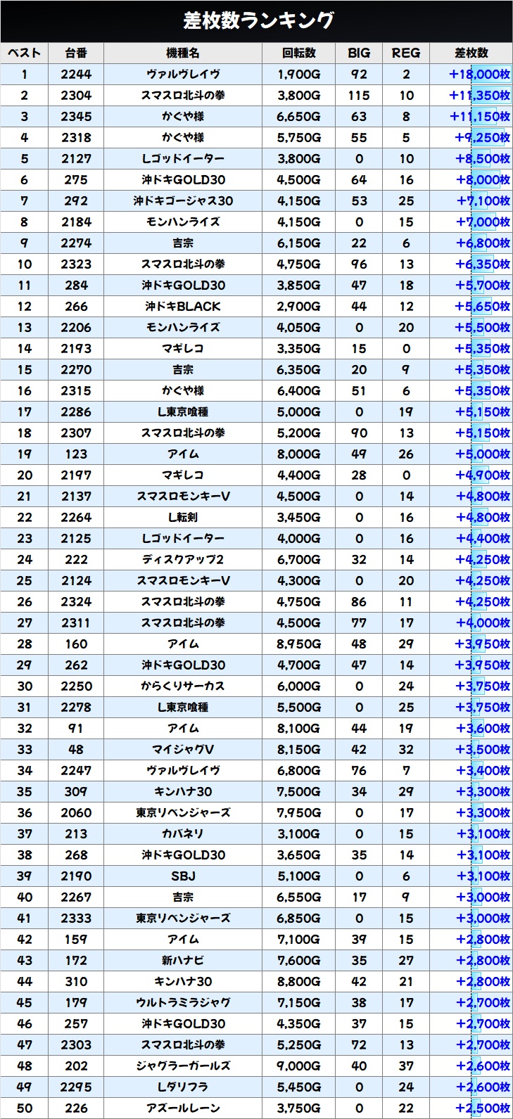 差枚数ランキング&島図をチェック