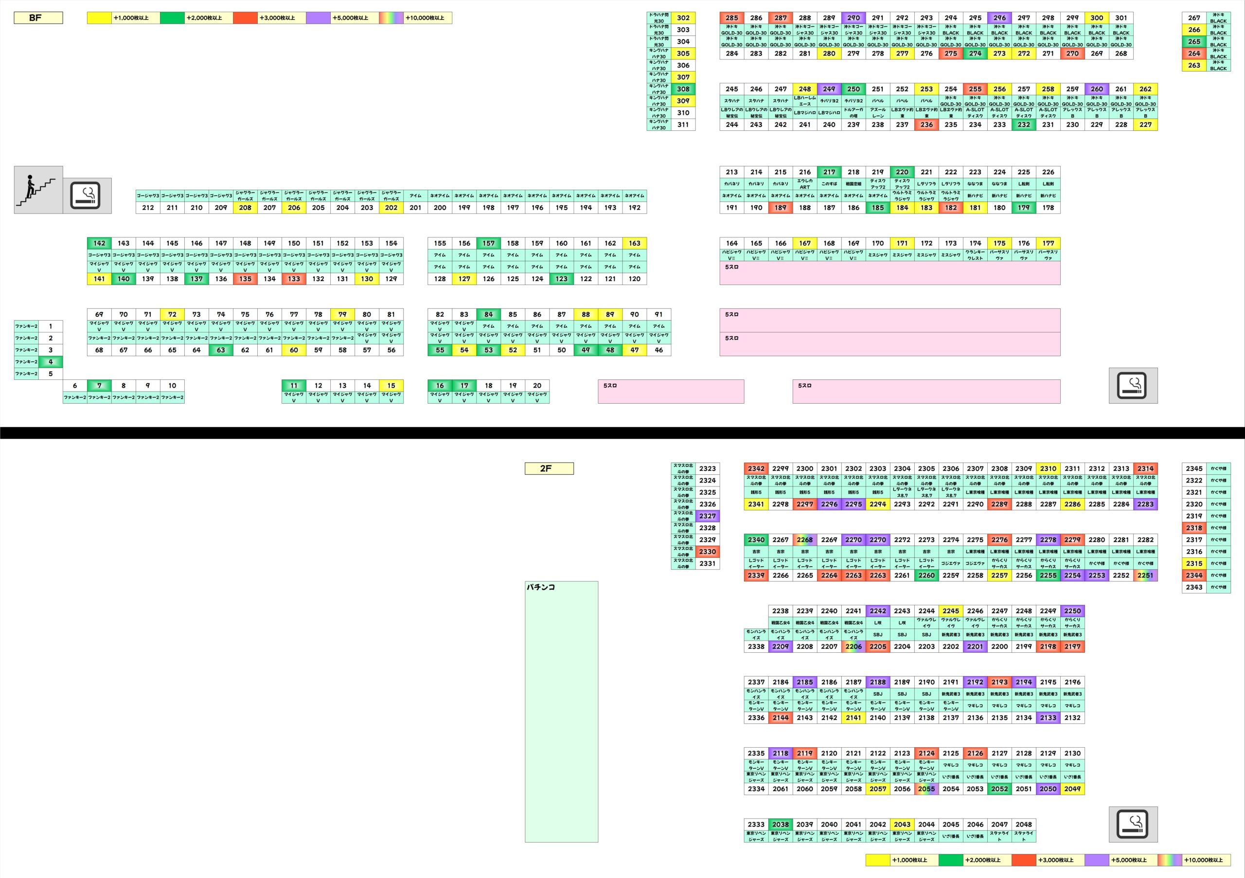 傾向通り厚めのエリアは当然強く、それ以外のエリアにも満遍なく仕掛けが用意されていたので、悪番でもチャンスのある1日になっていました。抽選が悪くてもツモれる可能性はあるので、とにかく足を運ぶことをオススメします。
