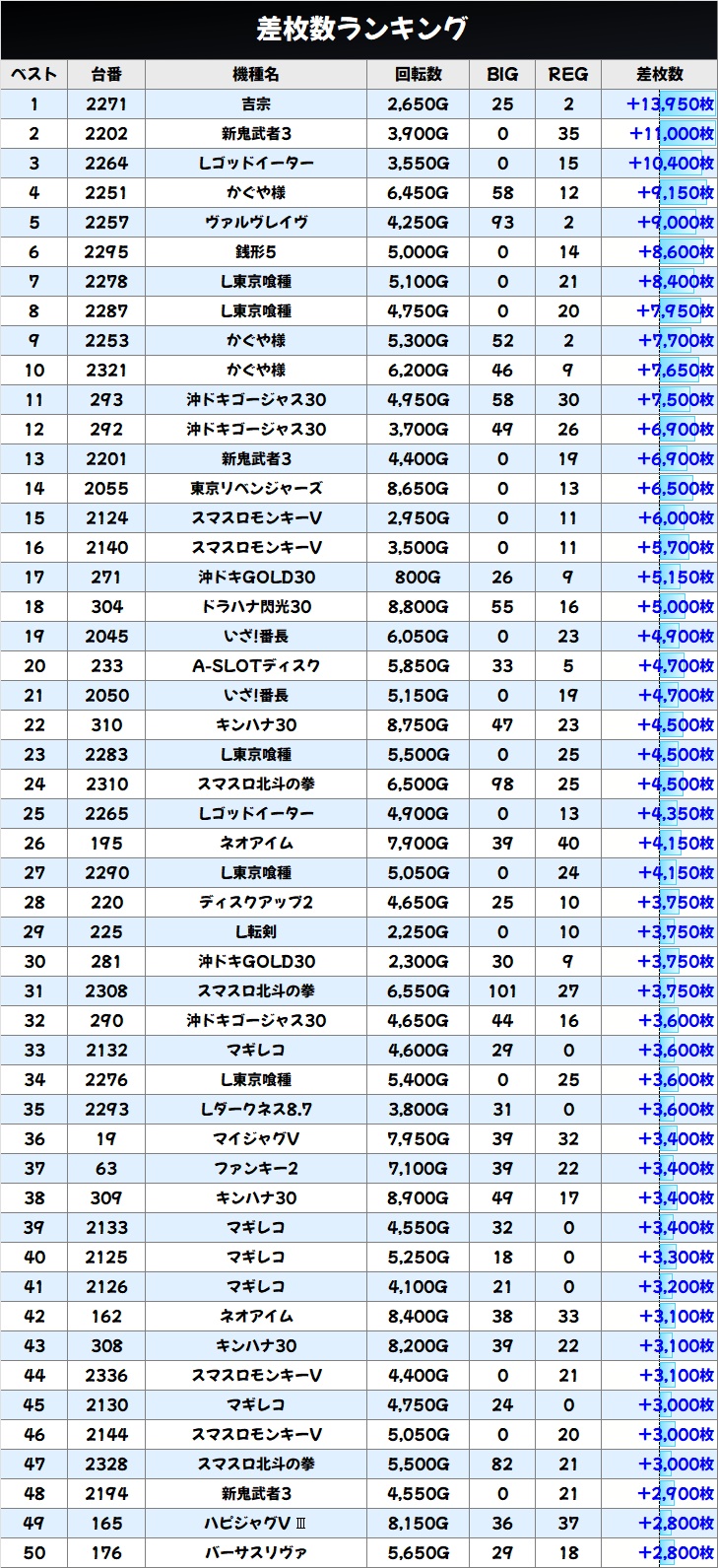 差枚数ランキング&島図をチェック