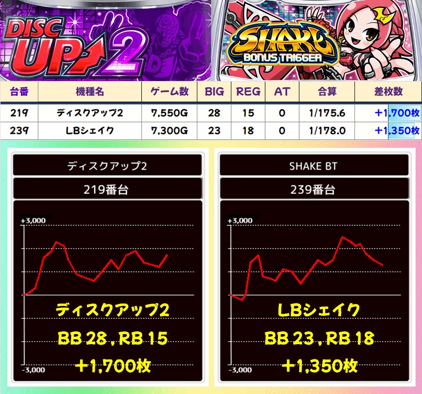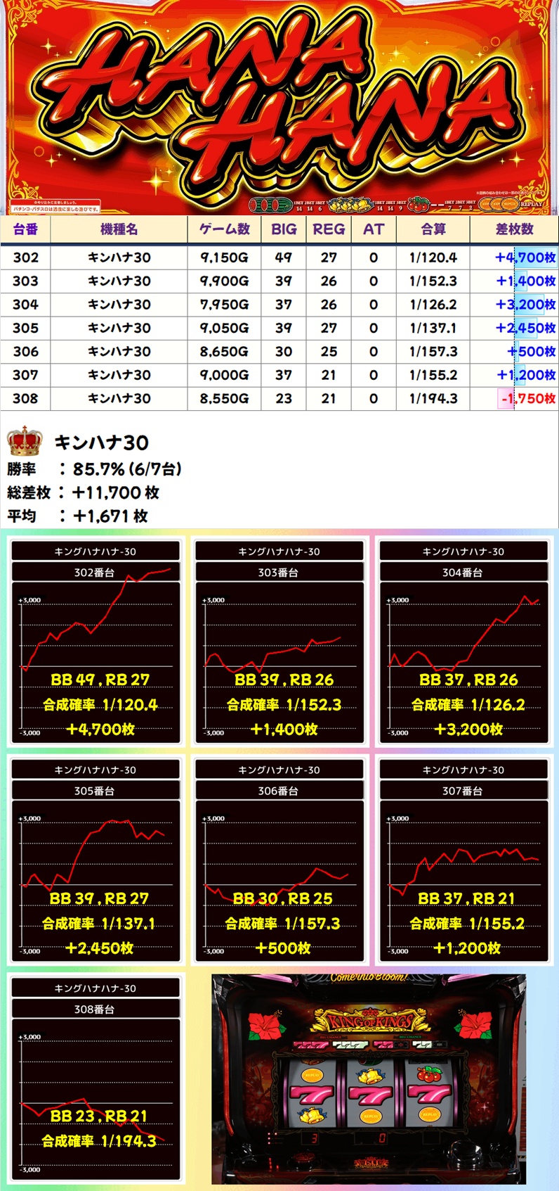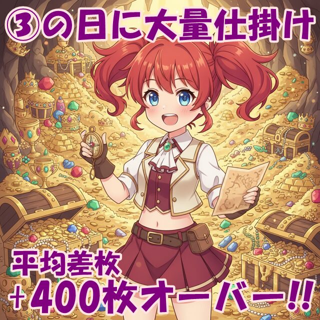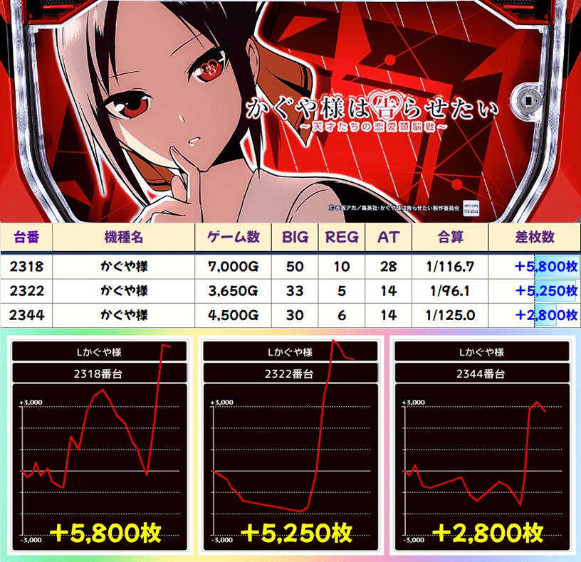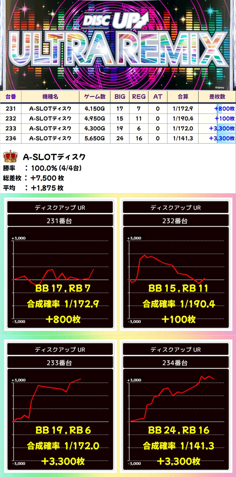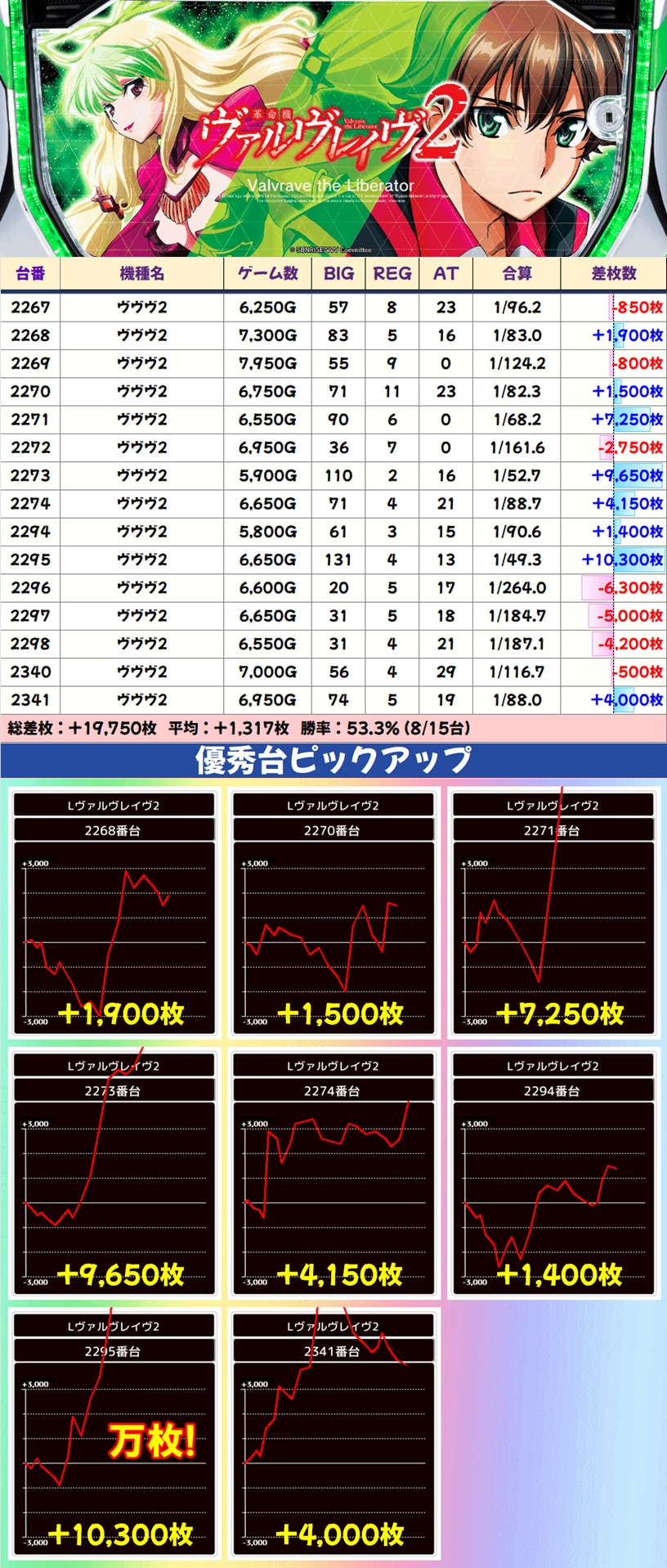 勝率は50%超となっており全体の約半分がプラス差枚。つまり、それだけ多くのお宝が用意されていたということ。今回に限らず毎回充実した仕掛けに期待できるので、次回以降も足を運ぶことをオススメします。