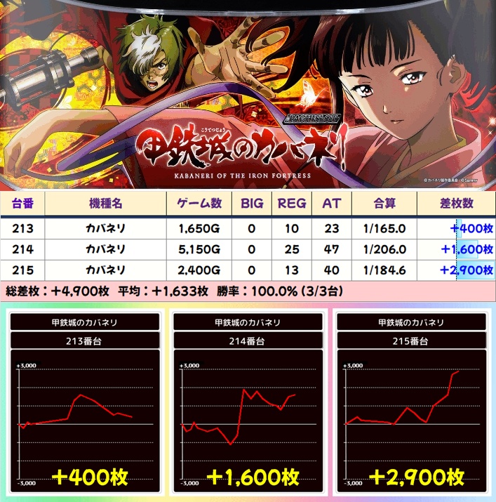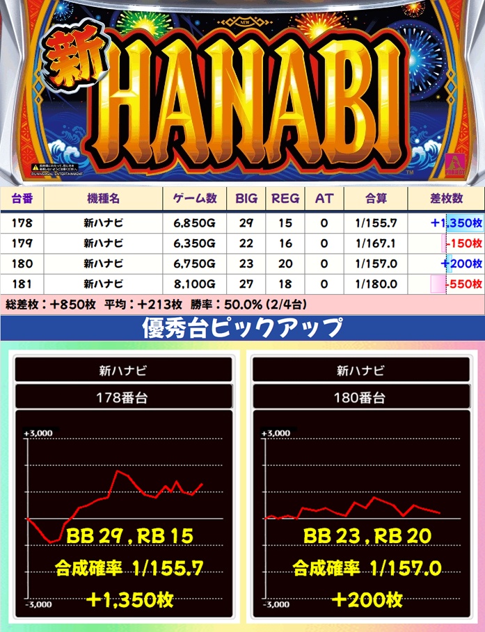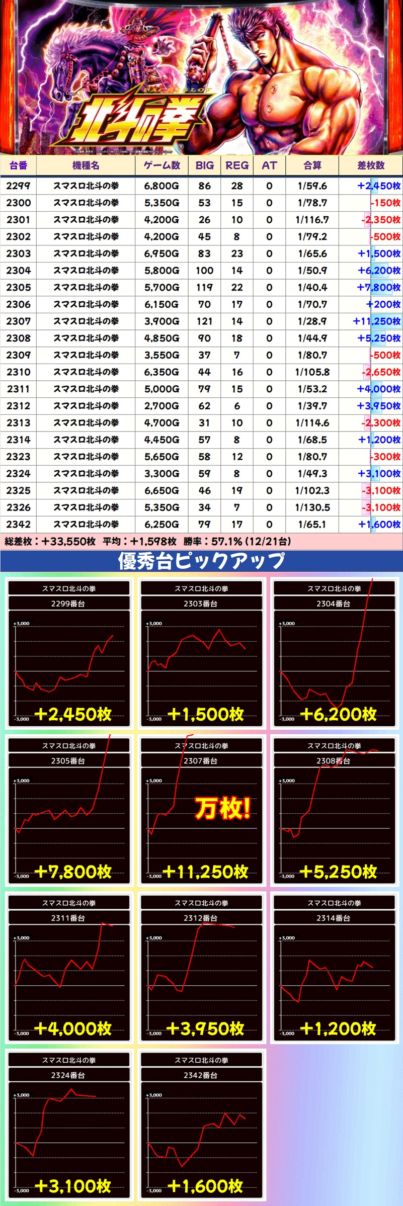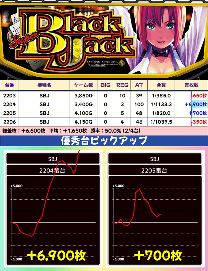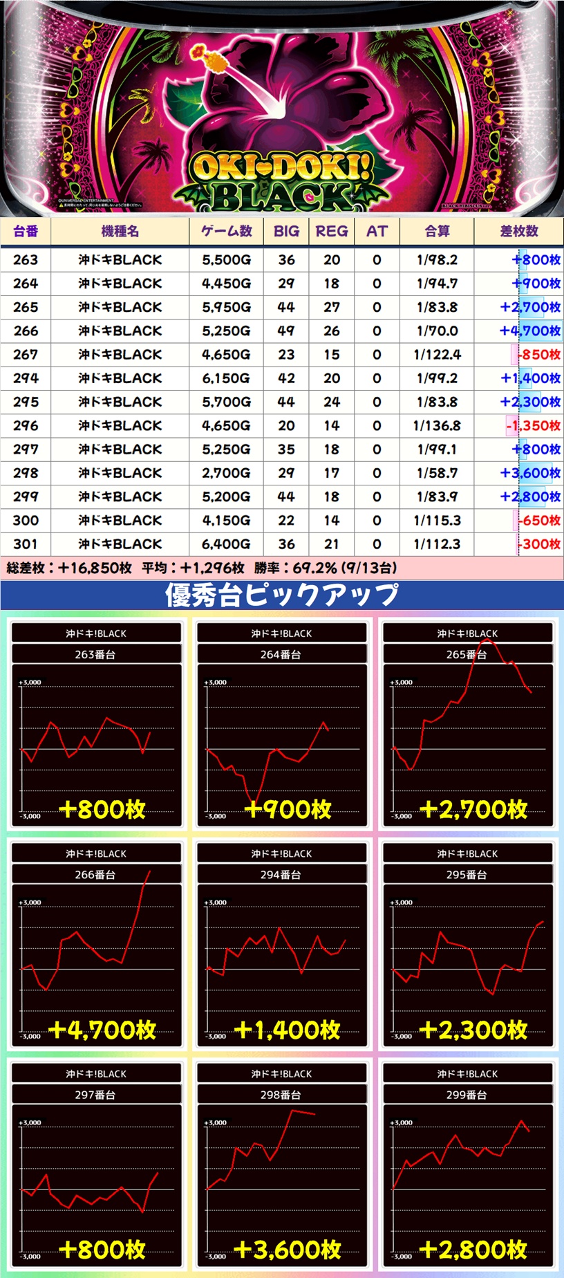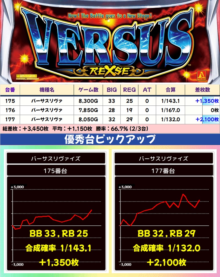 勝率は50%超となっており全体の約半分がプラス差枚。つまり、それだけ多くのお宝が用意されていたということ。今回に限らず毎回充実した仕掛けに期待できるので、次回以降も足を運ぶことをオススメします。