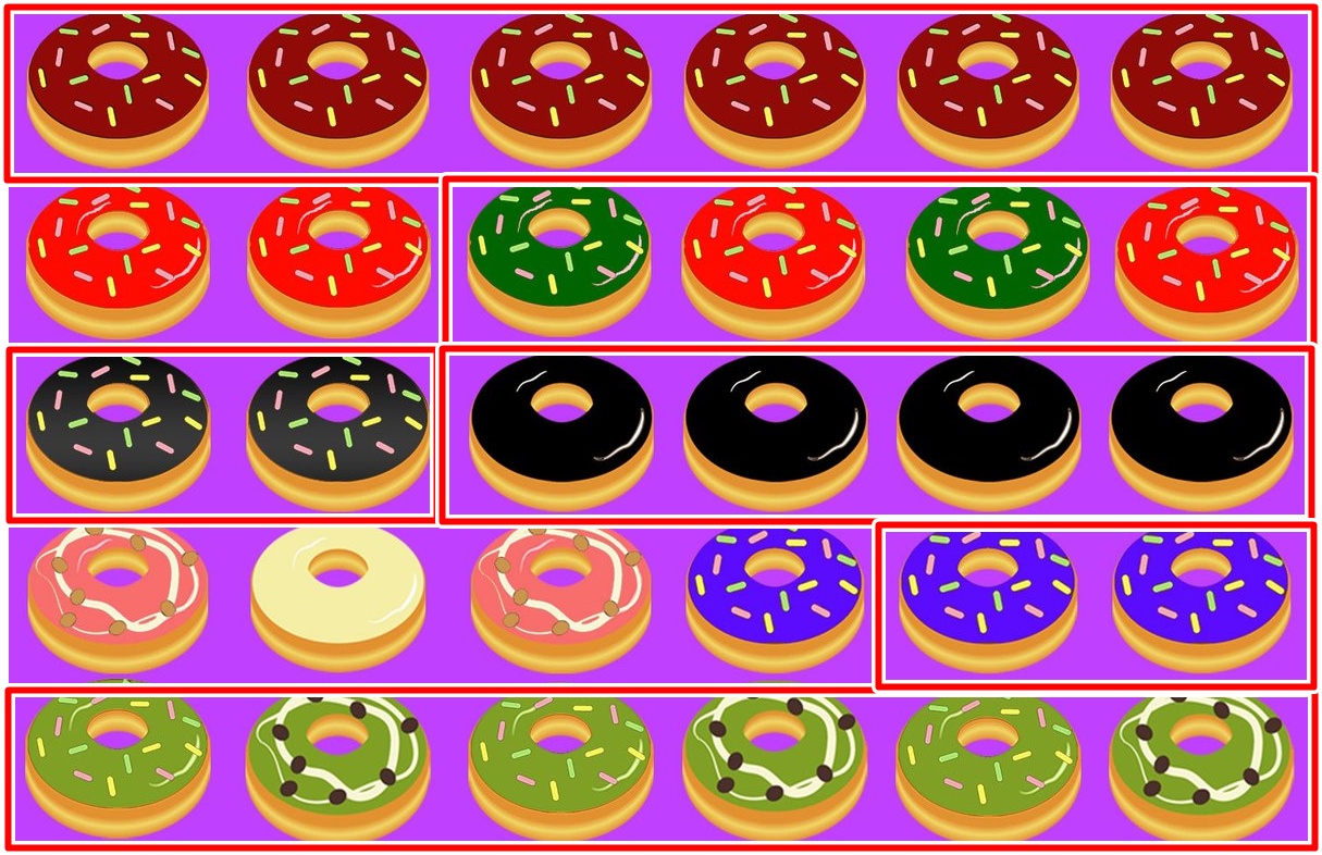 とドーナツの色がシリーズの並びに対応していました。過去にも同じ色のドーナツが連続した際には対応したパネルのシリーズに列全や並びが仕掛けられることが多かったので、ドーナツは色だけでなく連続個数も意識しましょう!