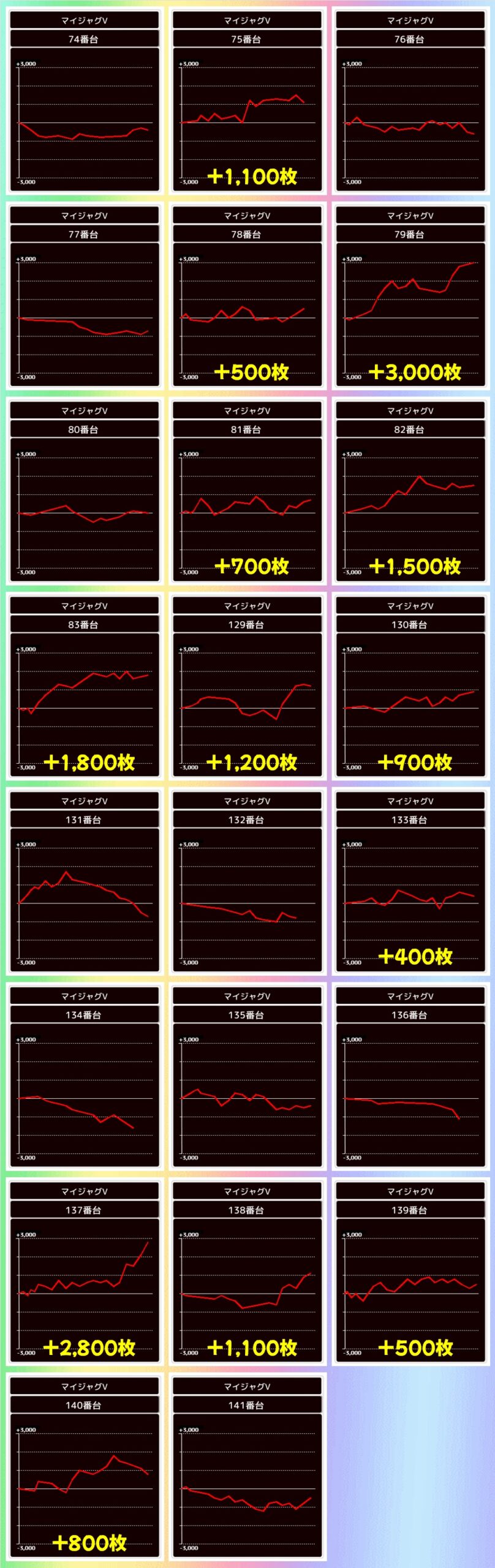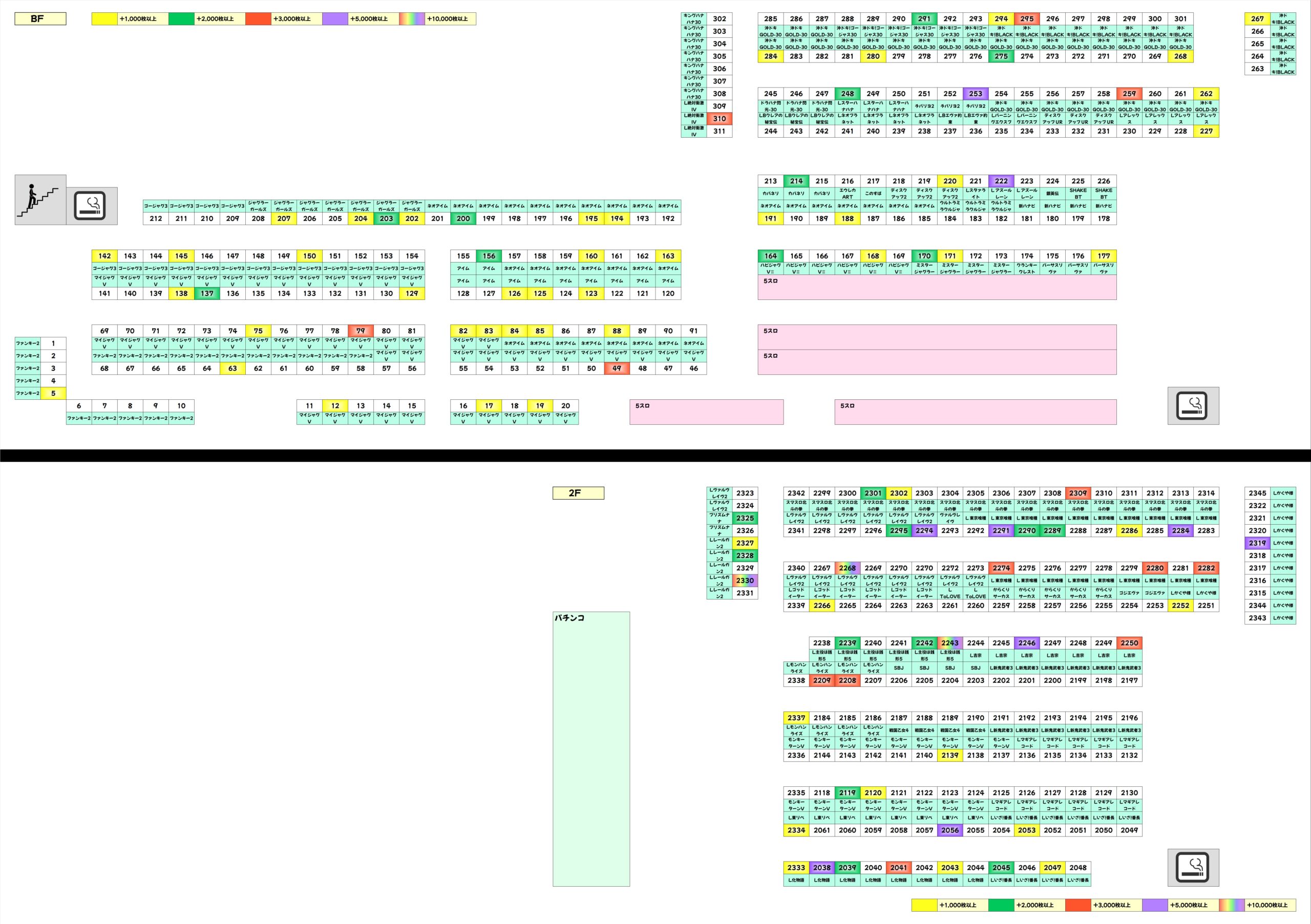 新台や多台数機種、17日の仕掛けがあった機種や不発台の上げ、