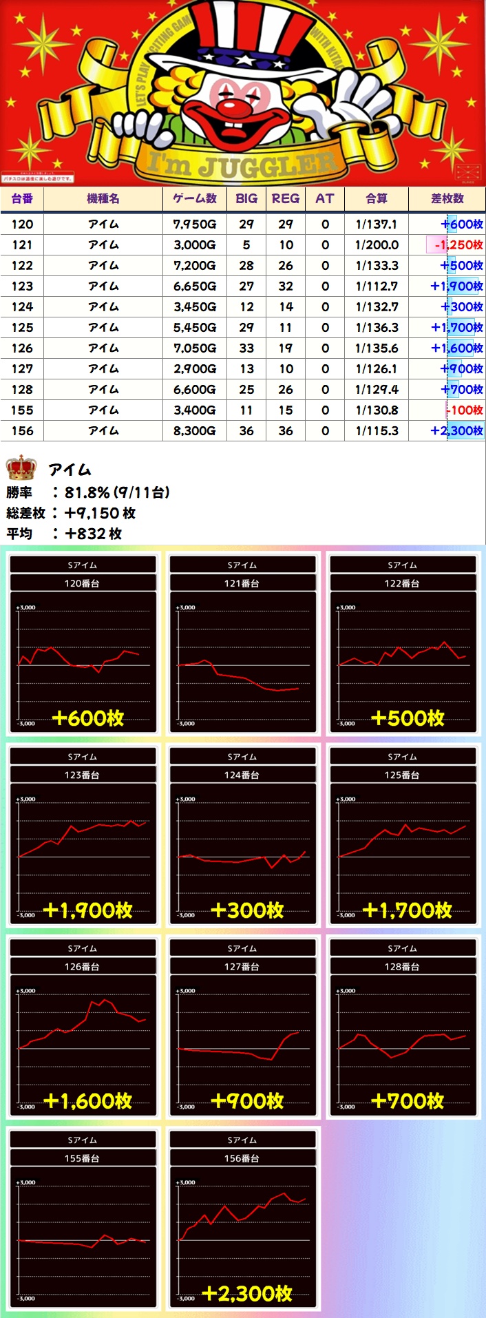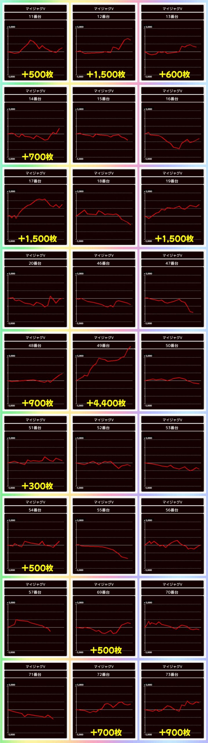 マイジャグやアイムなど他台数シリーズから高配分機種が3機種あり!台数の多いジャグは並び示唆もあったので優秀台が連続しているところは並びだった可能性も!