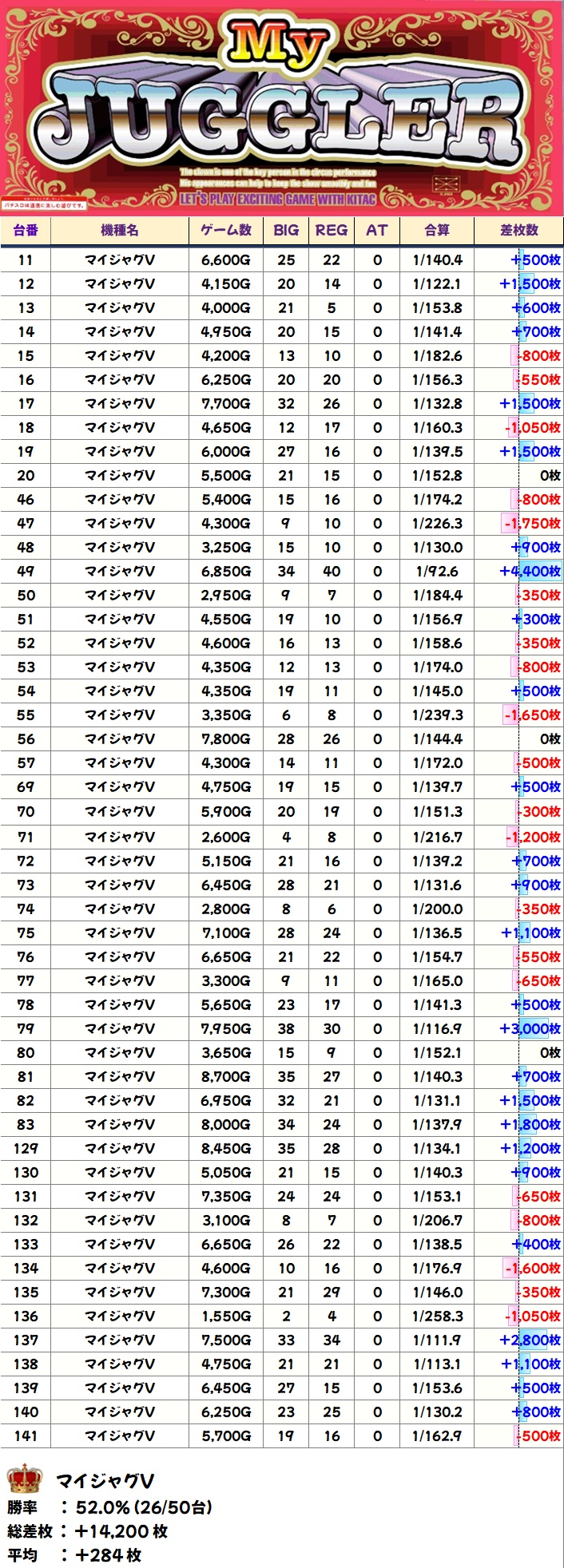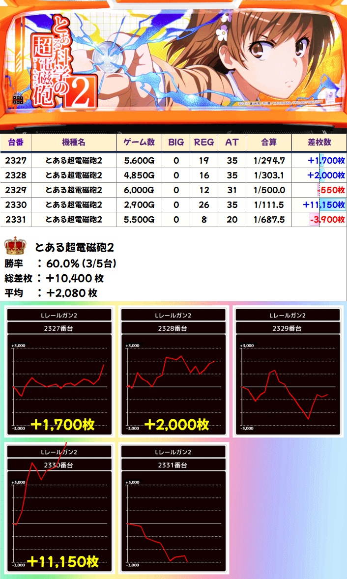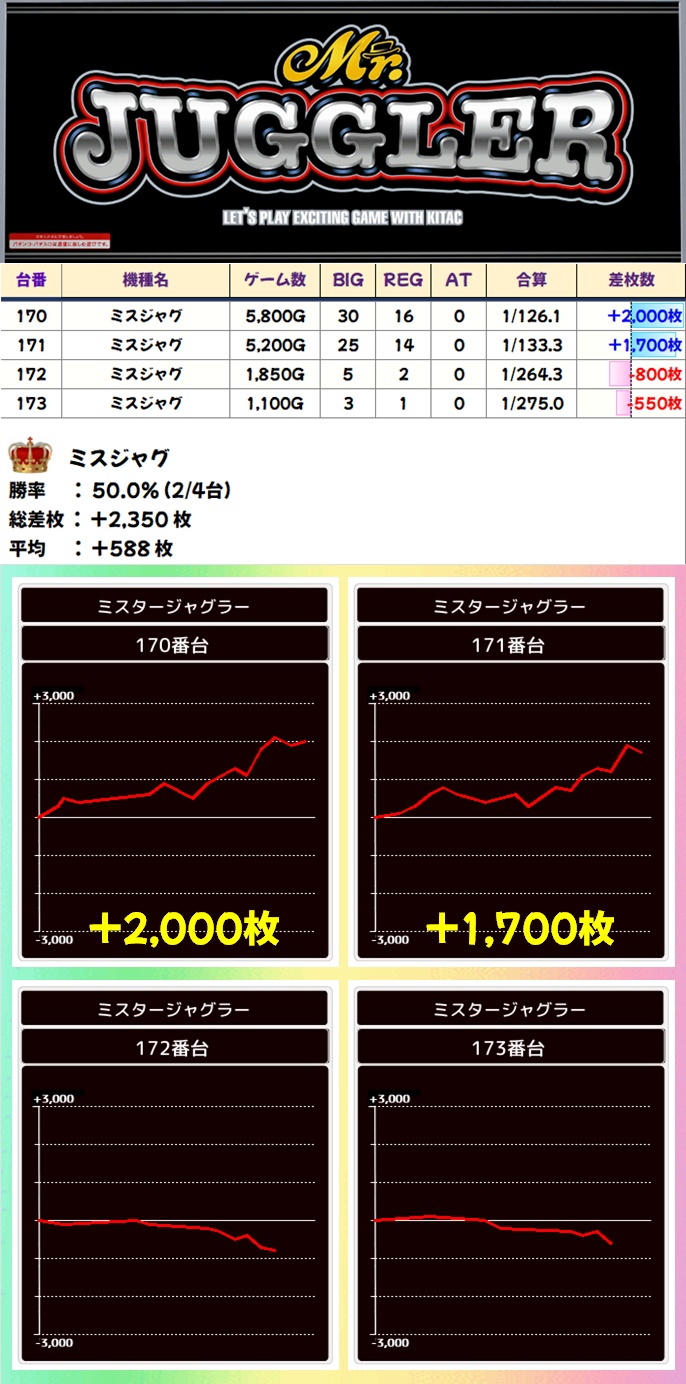 今回も平均+2000枚超と大幅プラスを叩き出しており、不発台があるもののゲーム数はしっかり回されているため、打たれていた方は仕掛けに気付いていたのかもしれません。
