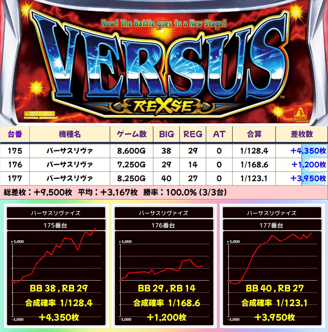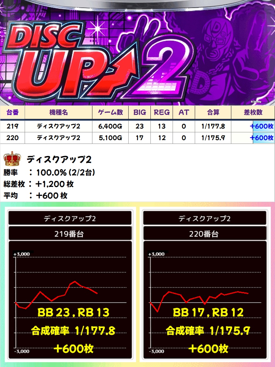 ノーマルコーナーではディスクアップ2が全台系濃厚、バーサスリヴァ・新ハナビが1/2系濃厚となっており、こちらも抜かりない仕掛けアリ。なかでもバーサスリヴァは平均+3,000枚オーバーとガッツリ出ていました。悪番対策でノーマルコーナーも強化傾向があるため見逃せません!