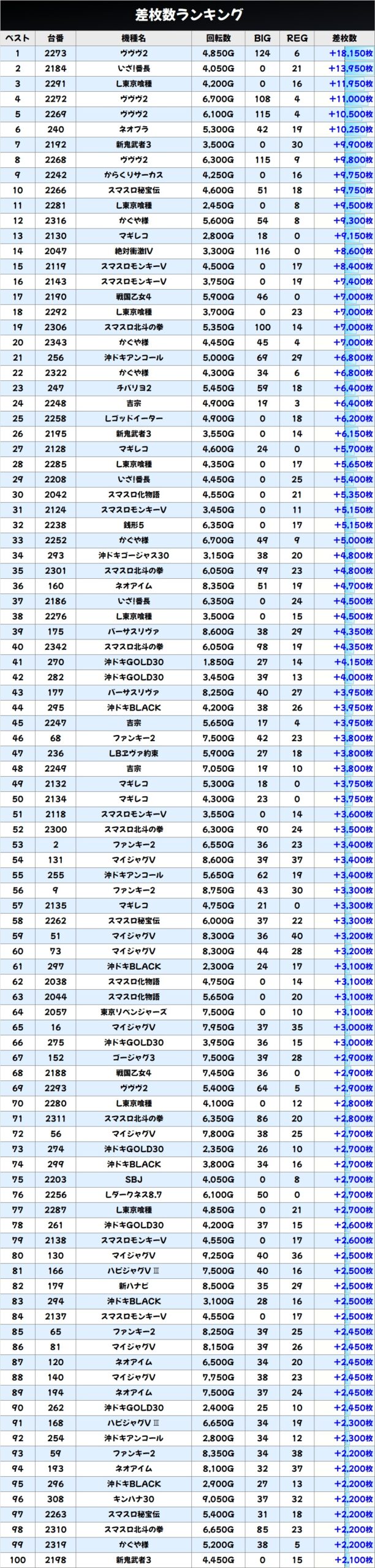 差枚数ランキング&島図をチェック
