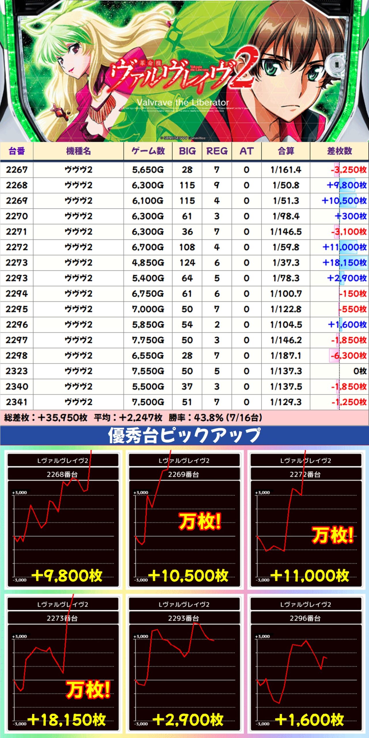 総差枚は衝撃の+20万枚オーバー!