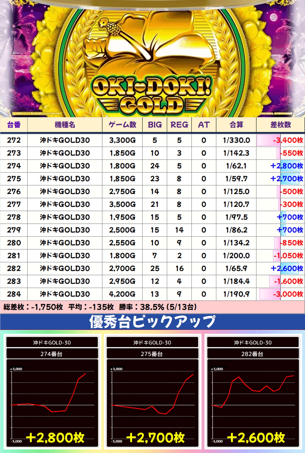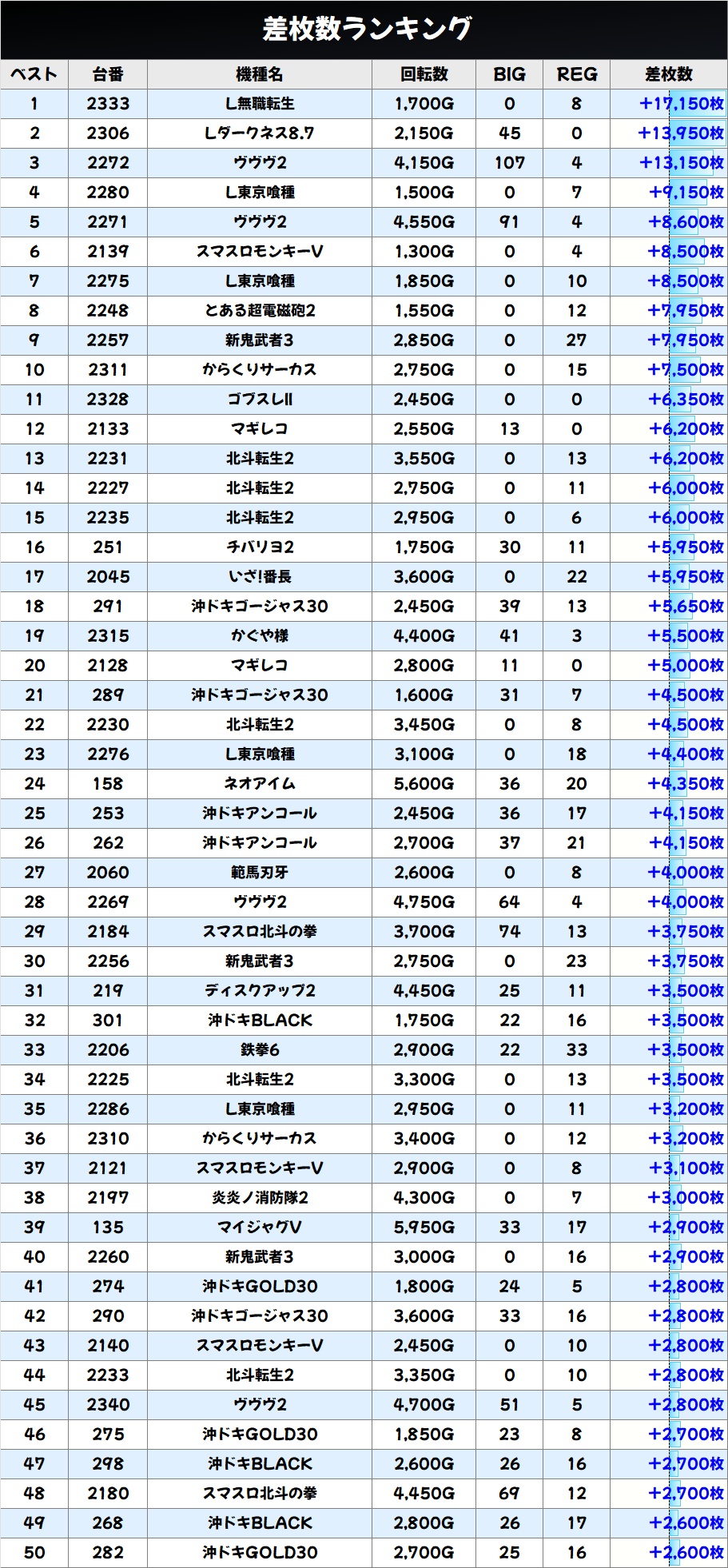 差枚数ランキング&島図をチェック