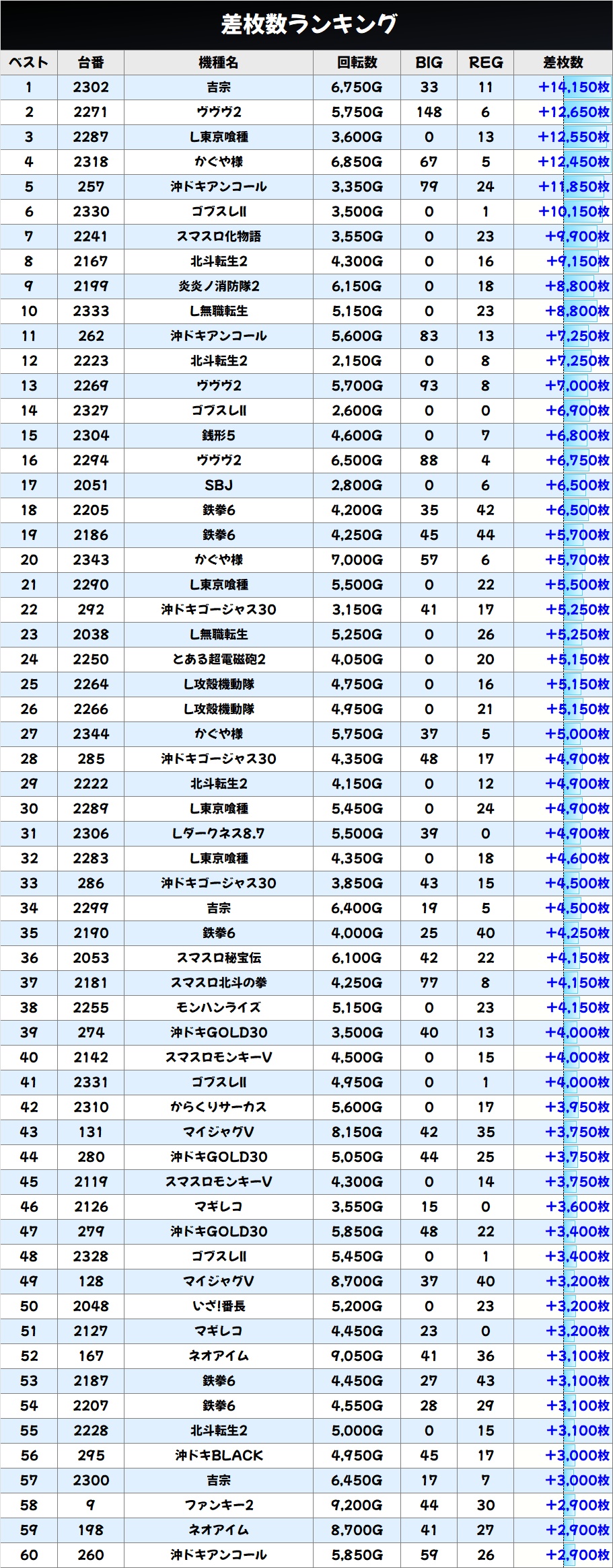 差枚数ランキング&島図をチェック