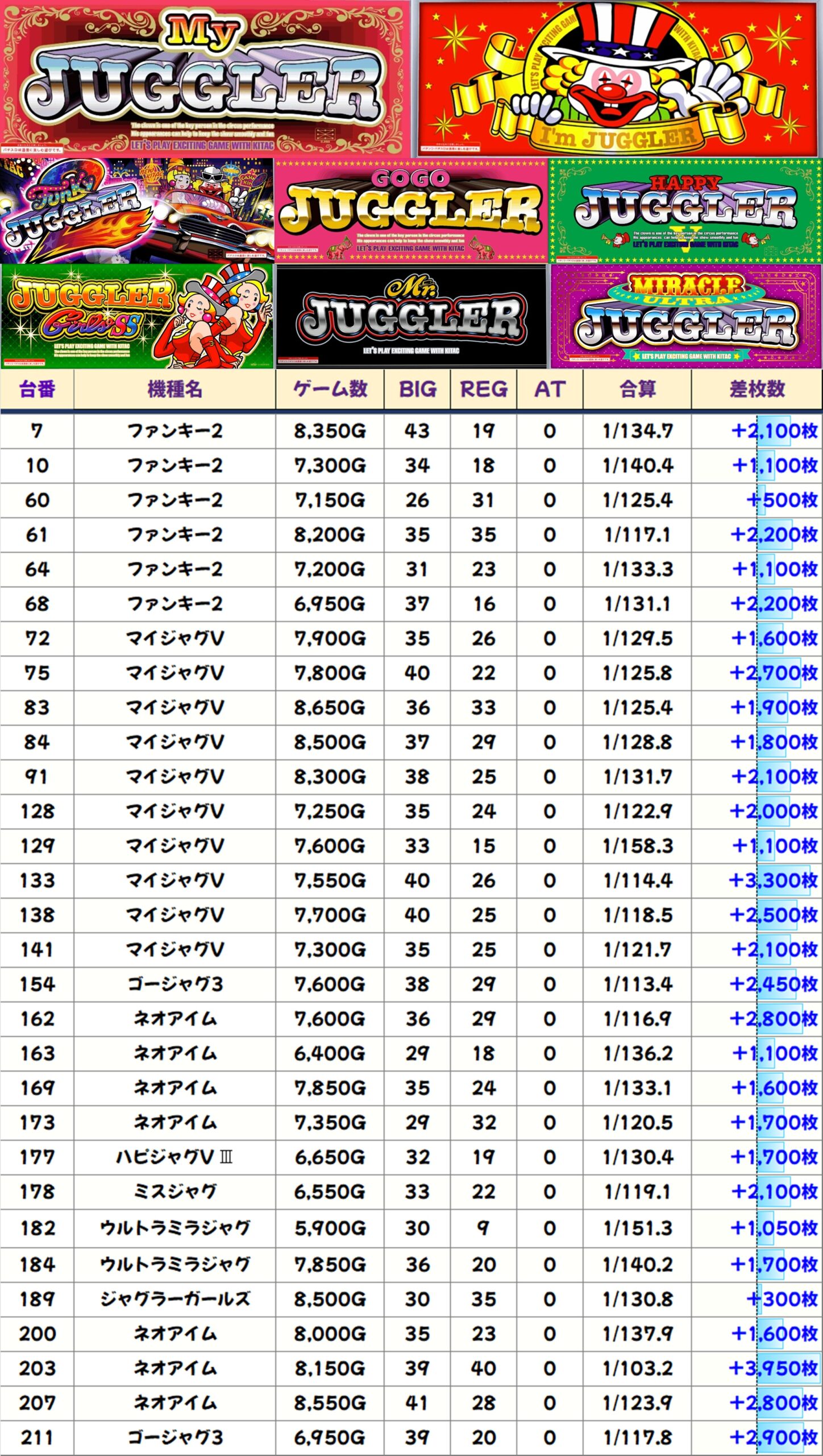 🔥毎回様々なエリアから優秀機種&優秀台が出現!!