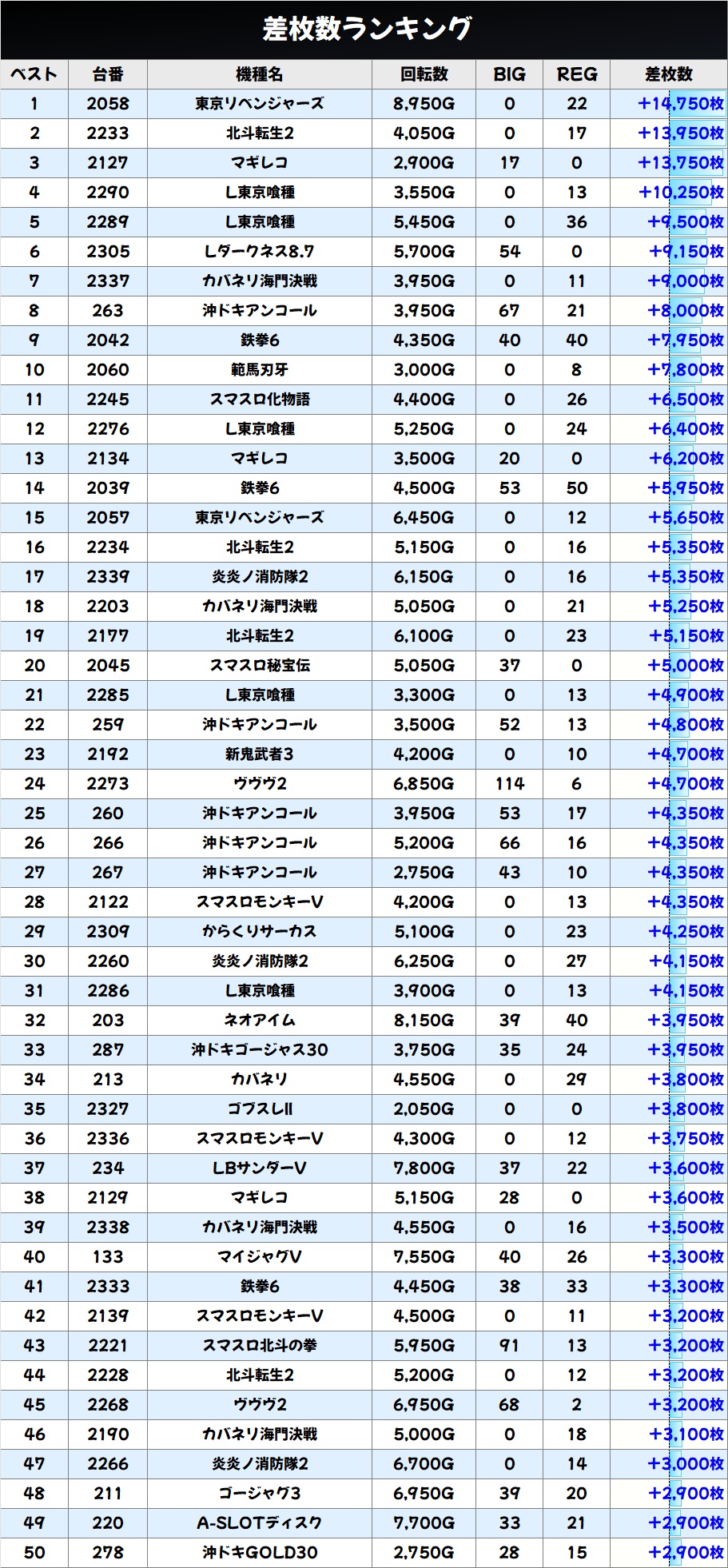 差枚数ランキング&島図をチェック