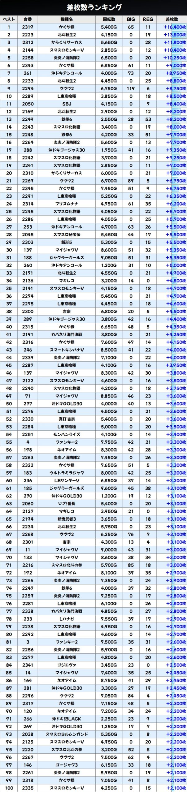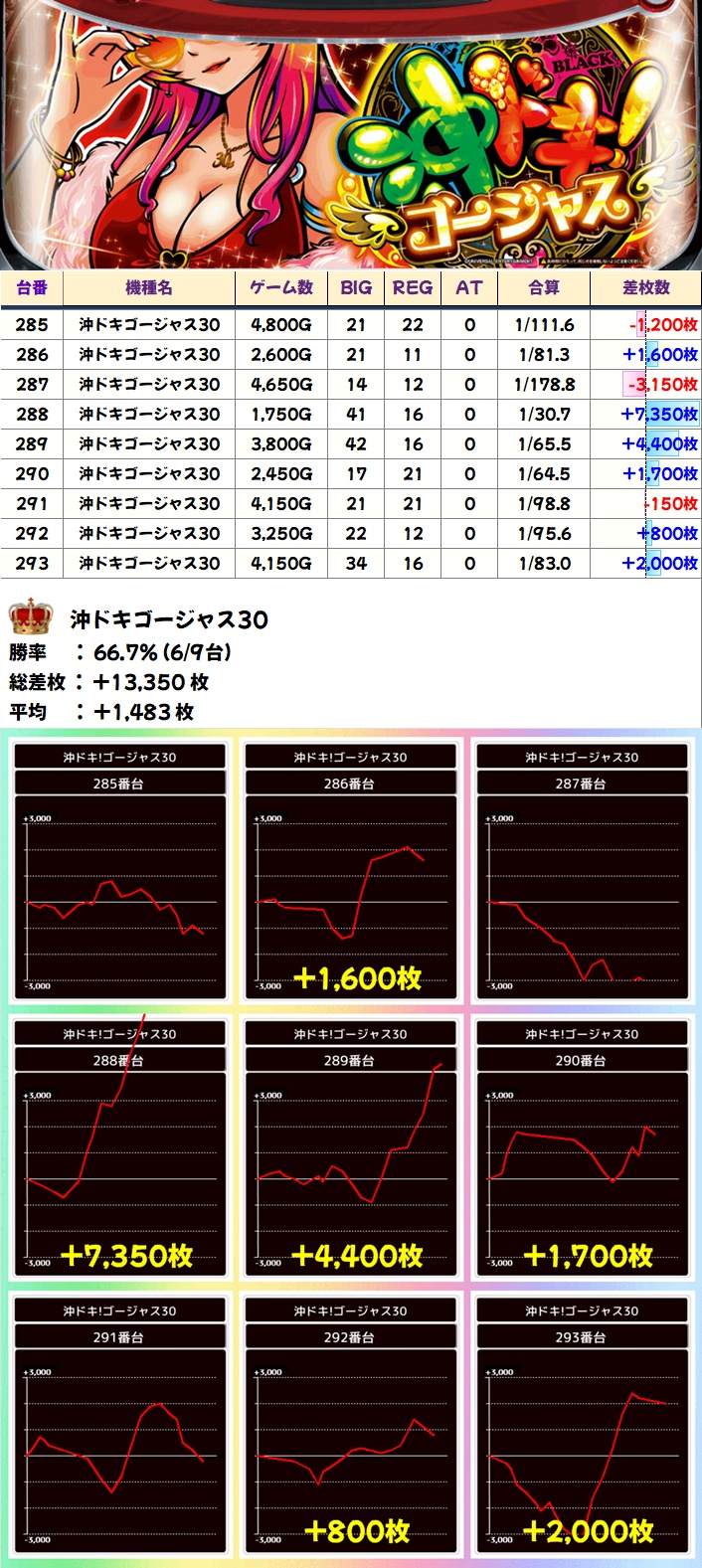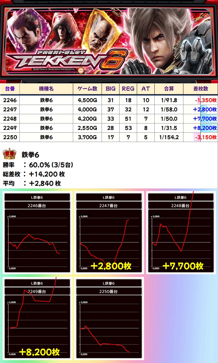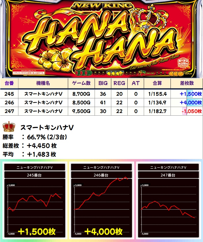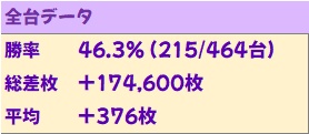 先月が控えめでしたが、今回はがっつりプラス差枚に!勝率も優秀でした!