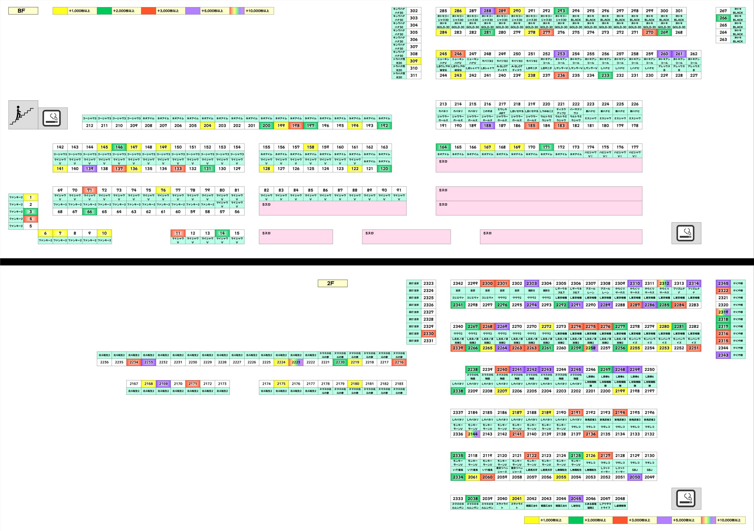 これまでの結果を見ても、ほとんど定番機種に同じ仕掛けが使われているのが分かります。良番であればあるほど定番エリアから狙いたいところです!