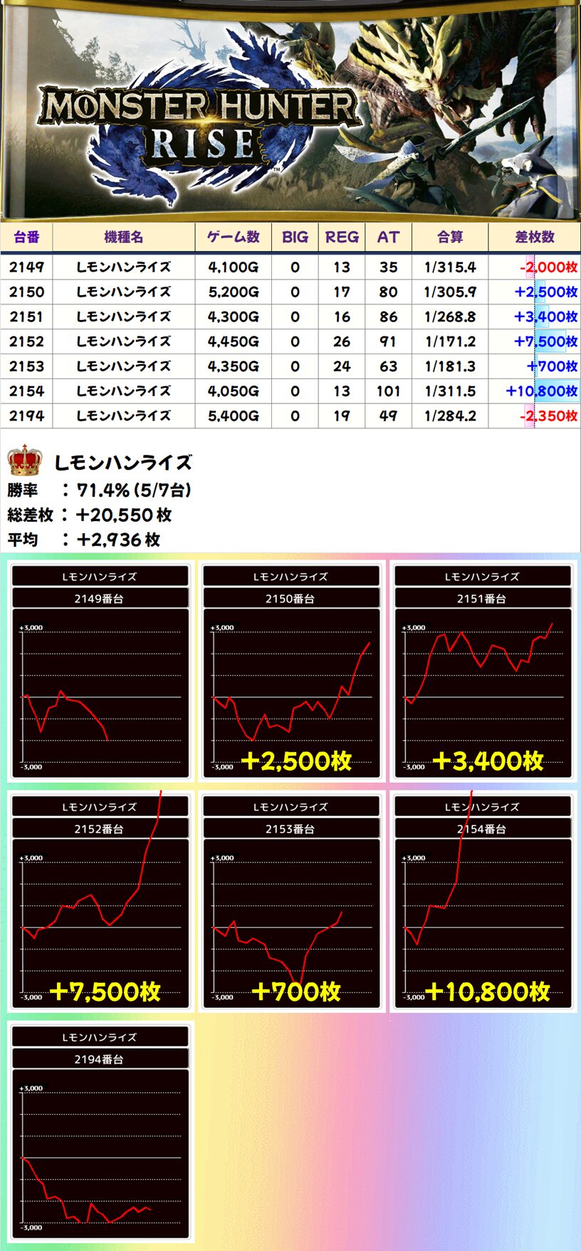 Lモンハンライズ (5/7台+) ➡平均 +2,936枚
