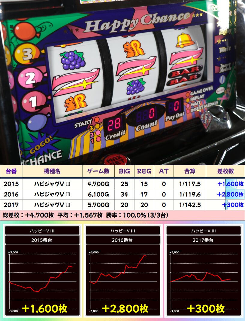 2015-2017 ハピジャグ ➡平均 +1567枚