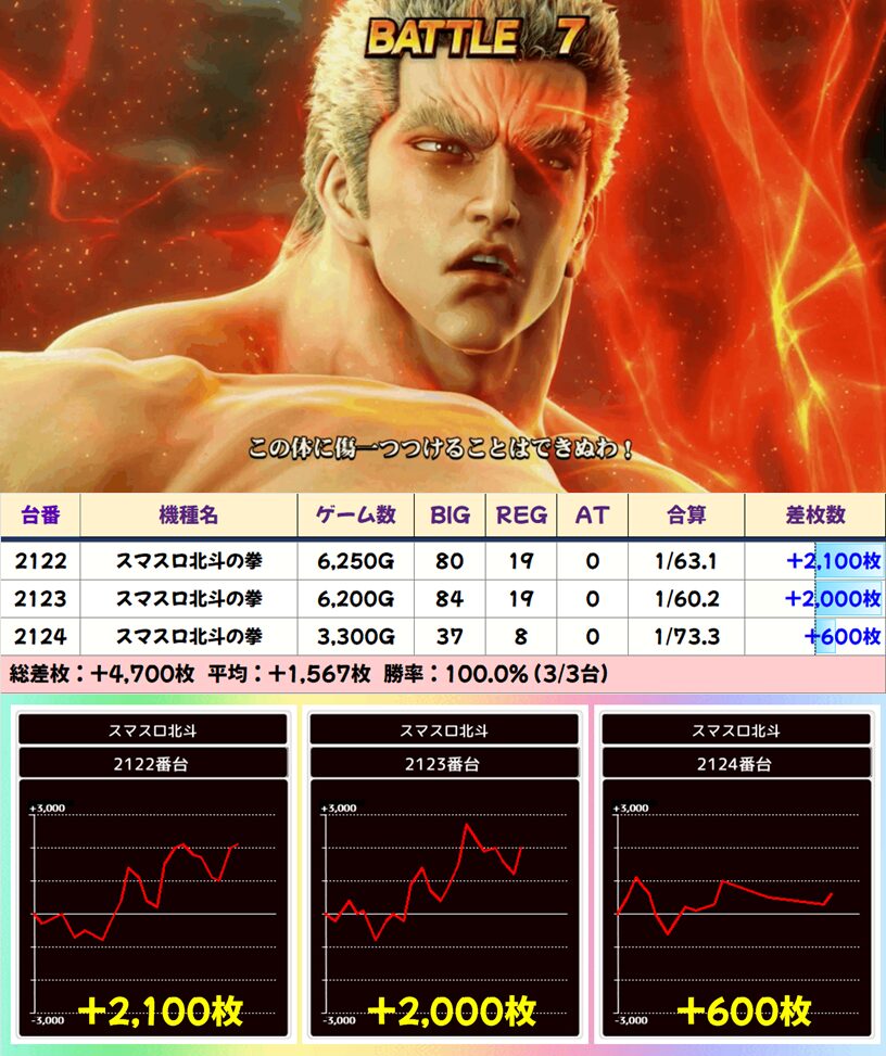 2122-2124 スマスロ北斗 ➡平均 +1567枚