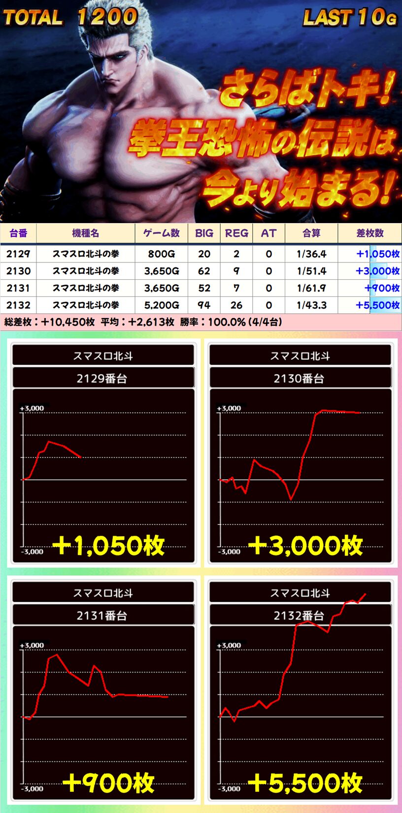 2129-2132 スマスロ北斗 ➡平均 +2613枚
