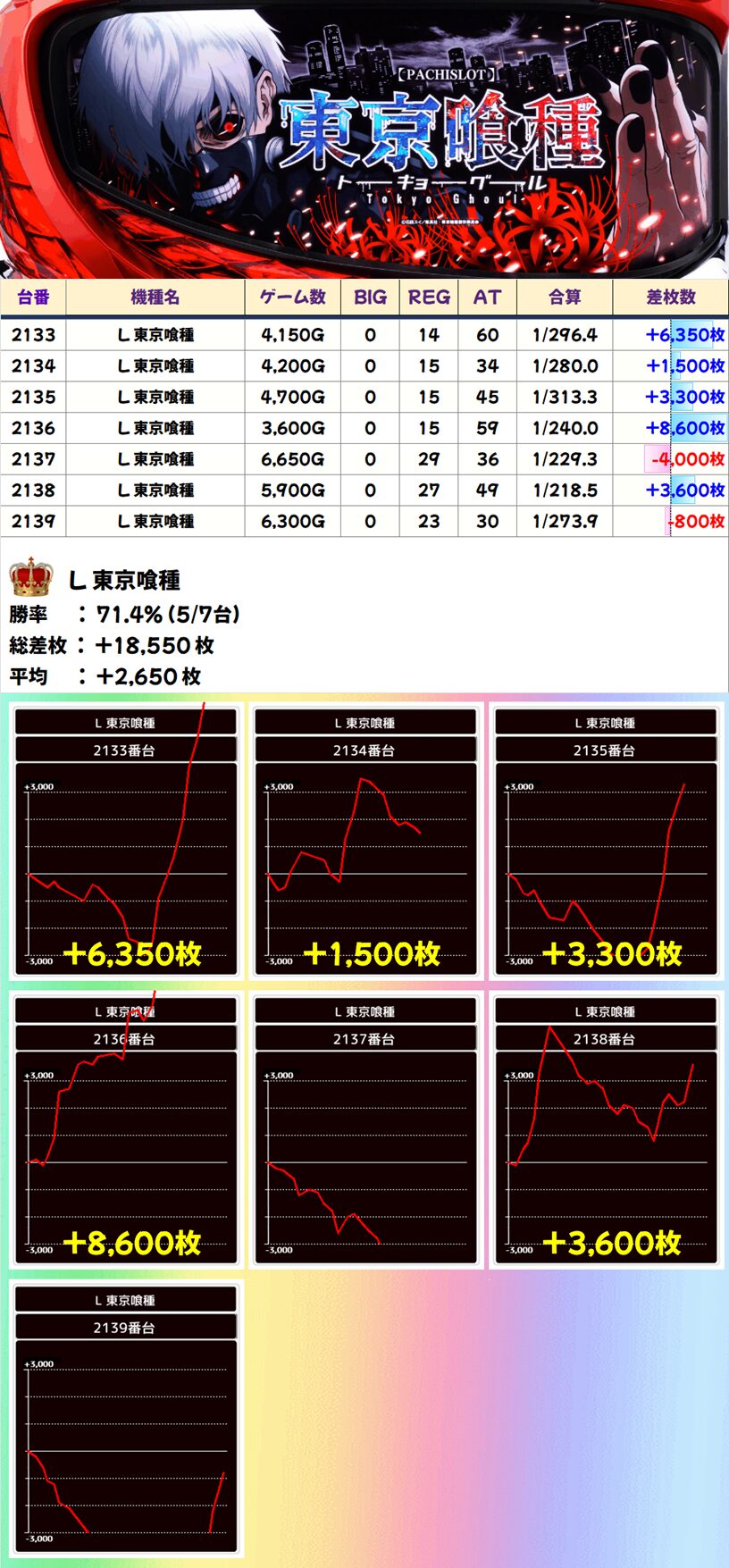 L 東京喰種 (5/7台+) ➡平均 +2,650枚