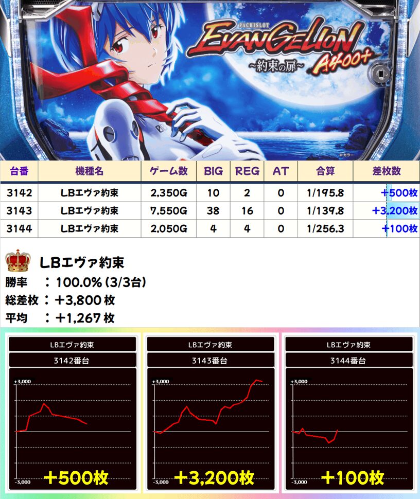 LBエヴァ約束 (3/3台+) ➡平均 +1,267枚