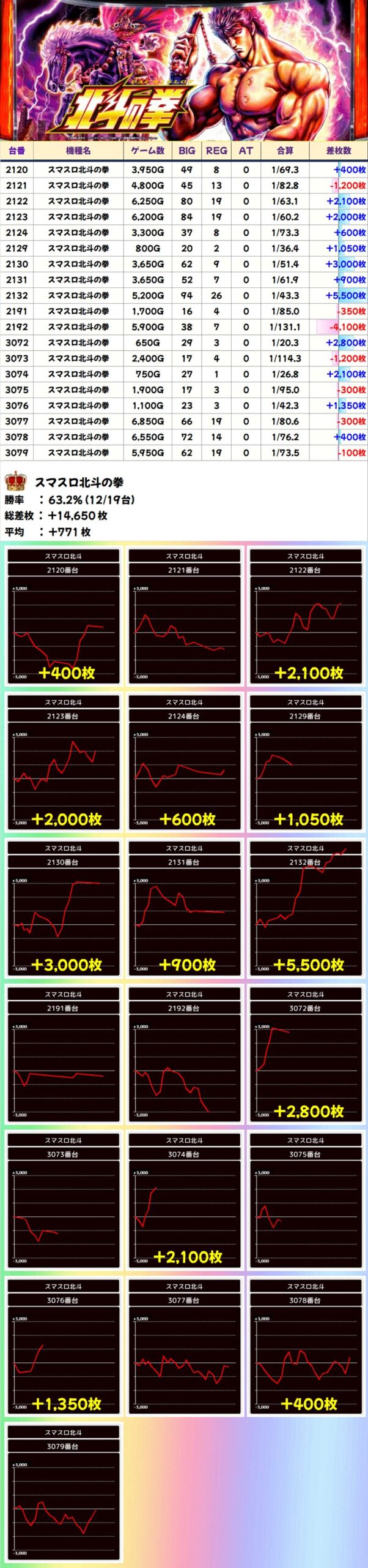 スマスロ北斗の拳 (12/19台+) ➡平均 +771枚
