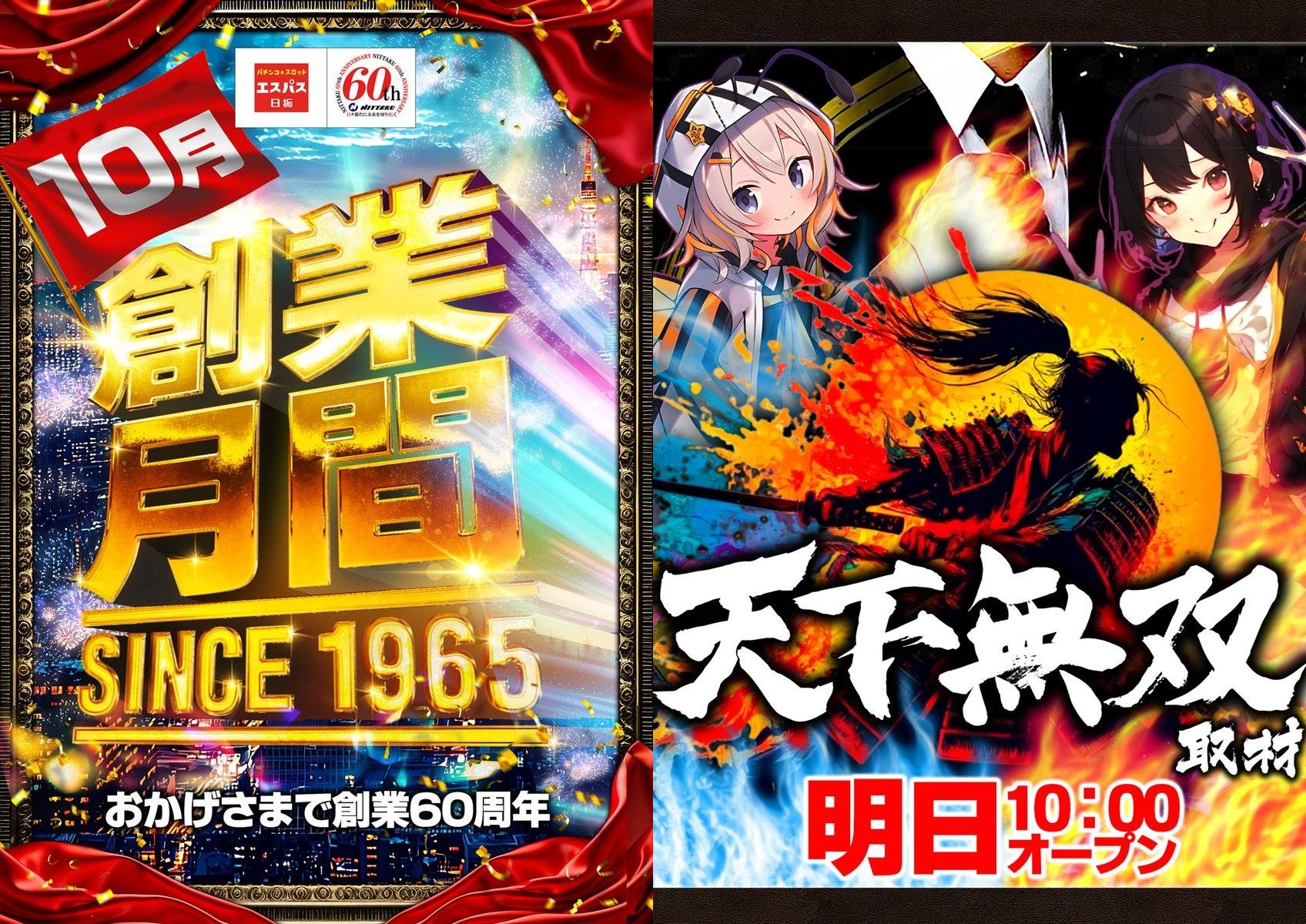 毎月2日は近隣対抗日となっており、毎回主力機種を中心に優秀台が多数出現しています。今月は創業月間ということに加え、実績十分の天下無双取材を開催と気合い十分。月初から大量仕掛けに期待が高まりました。