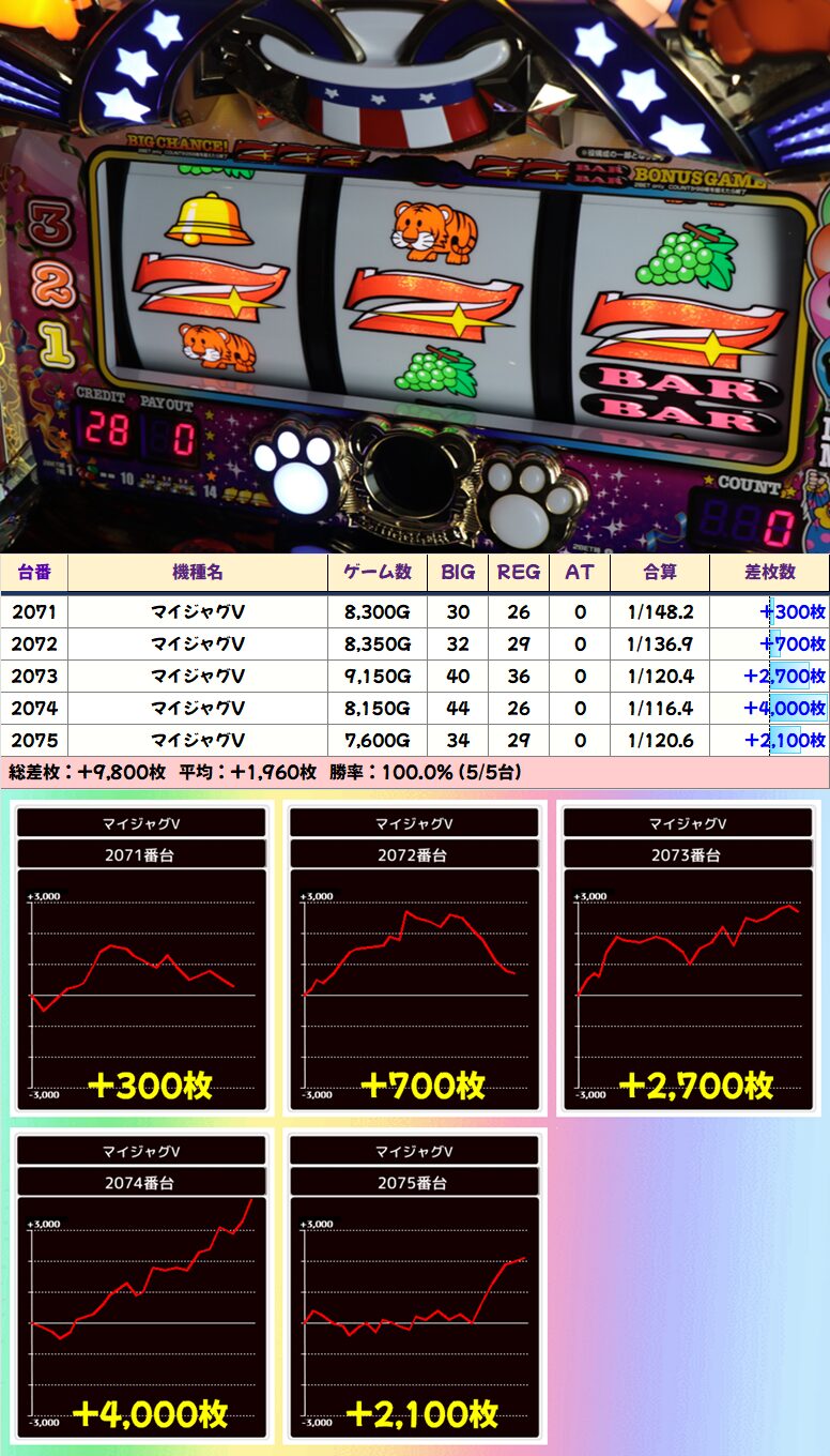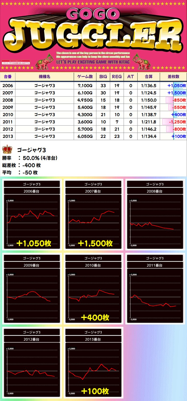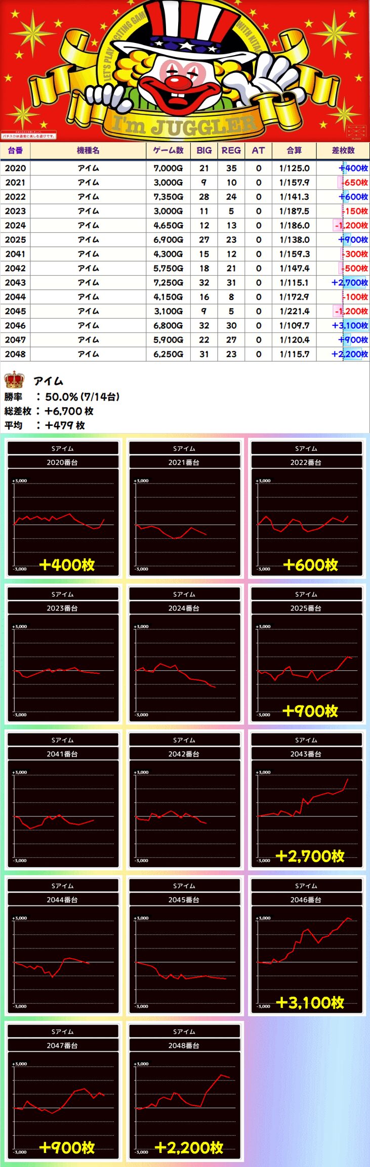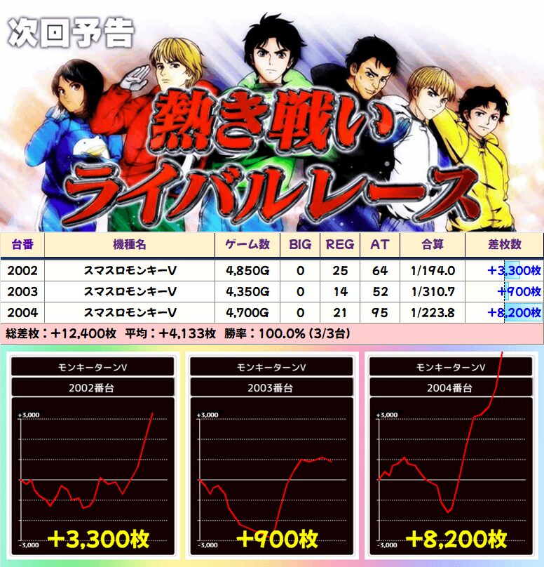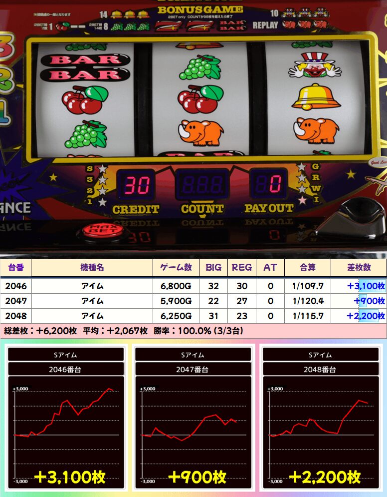 今回、全台系とみられる機種は上記の3機種。中にはやや伸び悩んだ台も見られましたが、いずれも平均差枚では優秀な数値を記録!稼働不足の台はもったいなかったか!?
