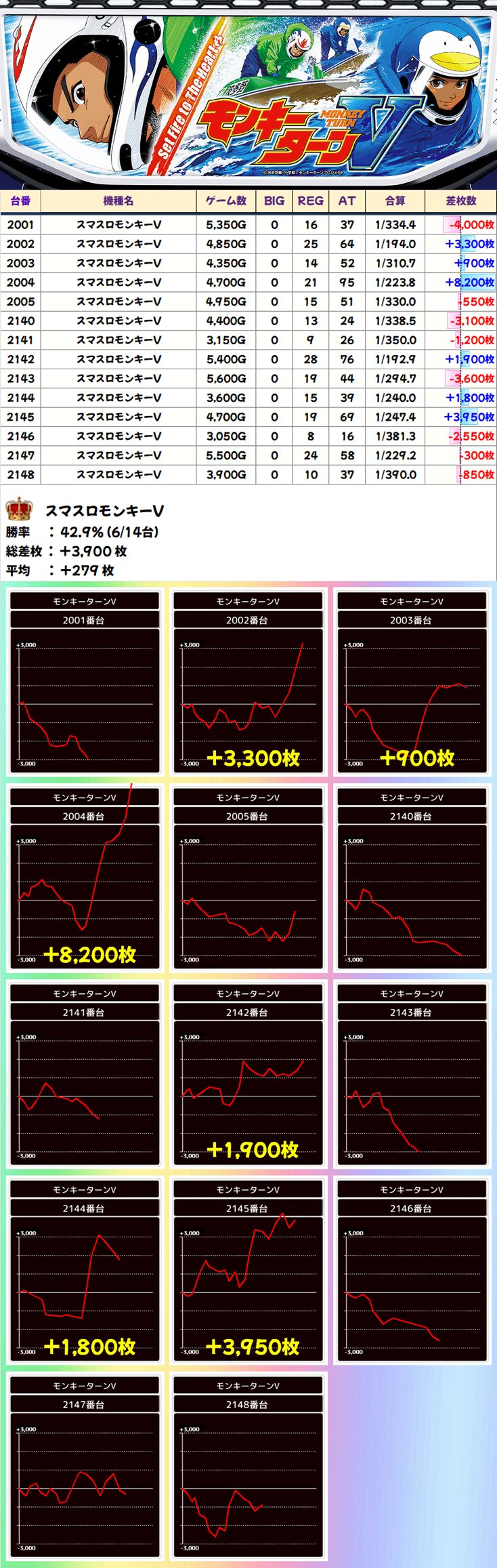 スマスロモンキーV (6/14台+) ➡平均 +279枚