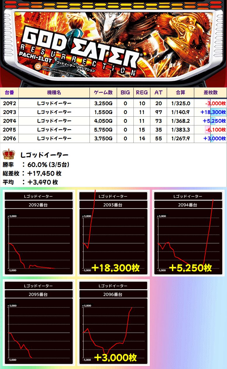 Lゴッドイーター (3/5台+) ➡平均 +3,490枚
