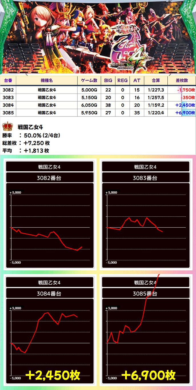 戦国乙女4 (2/4台+) ➡平均 +1,813枚