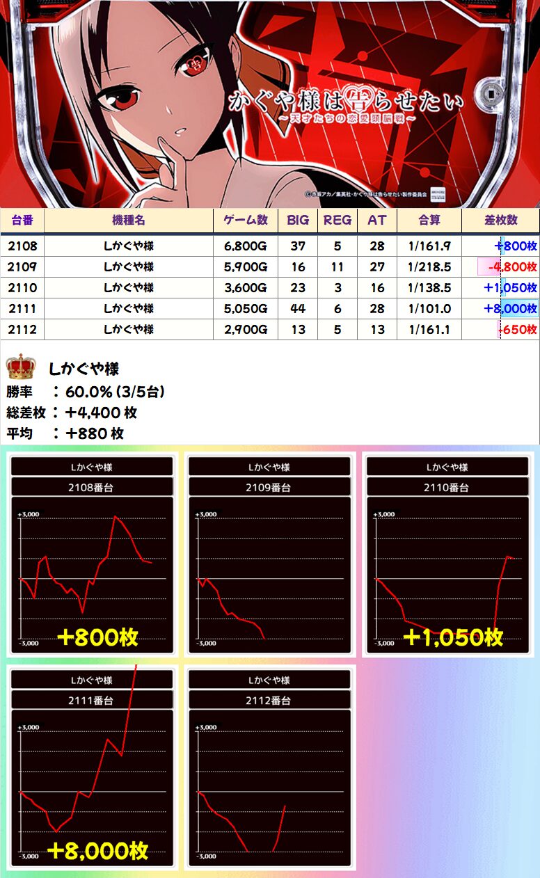 Lかぐや様 (3/5台+) ➡平均 +880枚