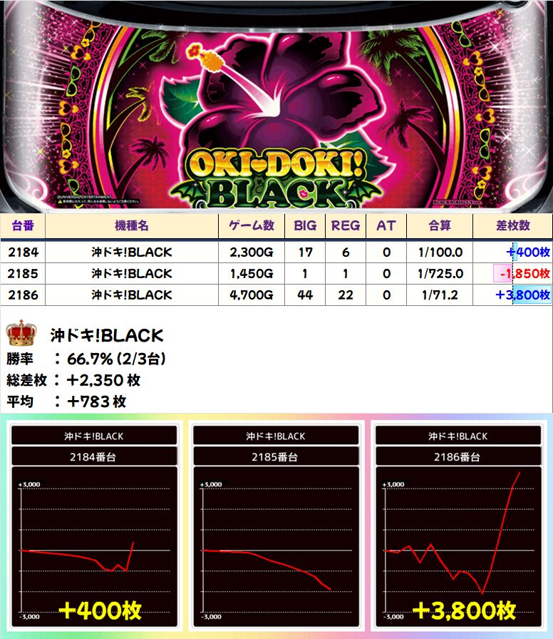沖ドキ!BLACK (2/3台+) ➡平均 +783枚