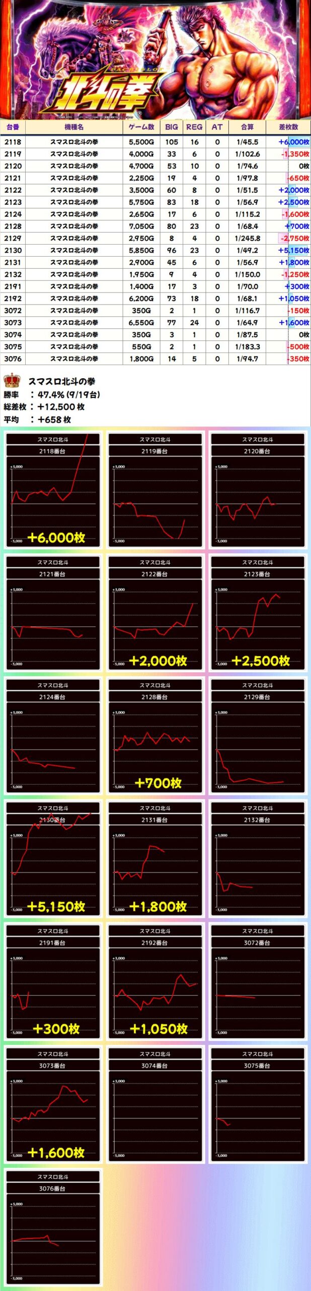 スマスロ北斗の拳 (9/19台+) ➡平均 +658枚