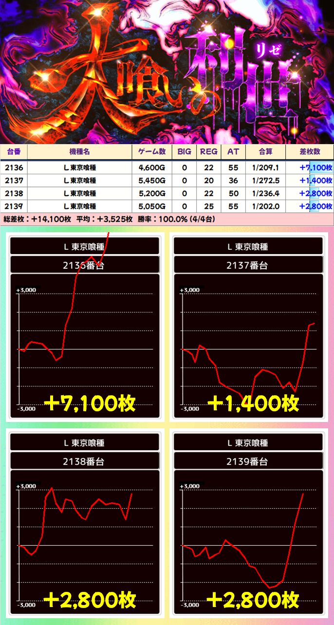 L 東京喰種 (5/7台+) ➡平均 +643枚