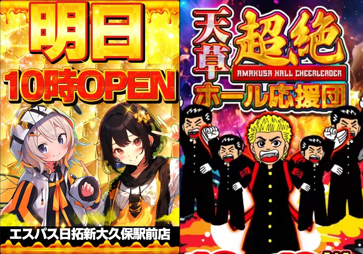 エスパス新大久保は⑧のつく日が特日となっていますが、なかでも毎月18日は特に強化されている傾向があり、好結果が頻発しています。直近では恒例の天草超絶ホール応援団来店取材も同時開催され、今回も大量仕掛けに期待が高まりました。